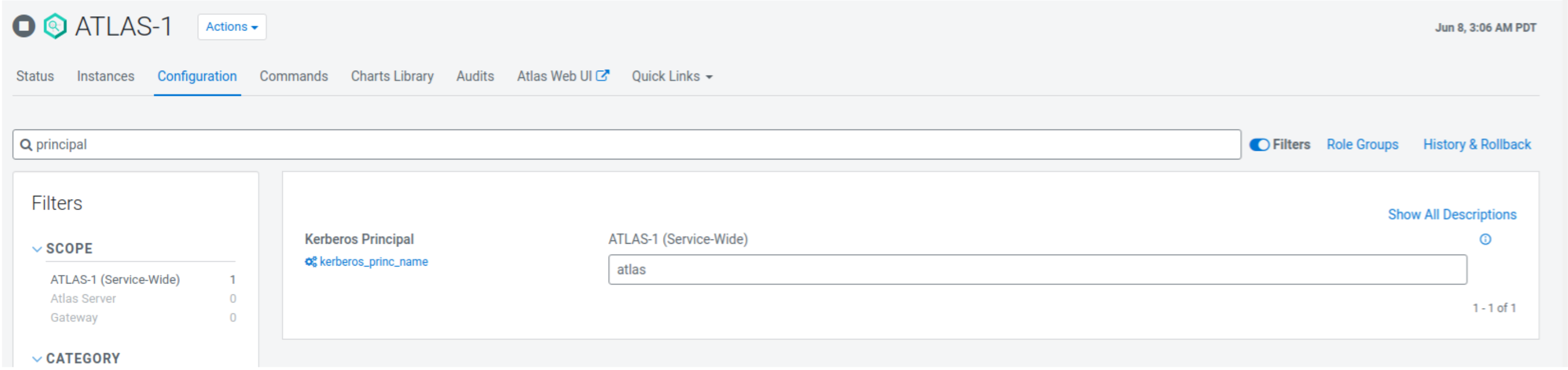For Kerberos Principal, enter the value as “atlas” and click Save Changes.