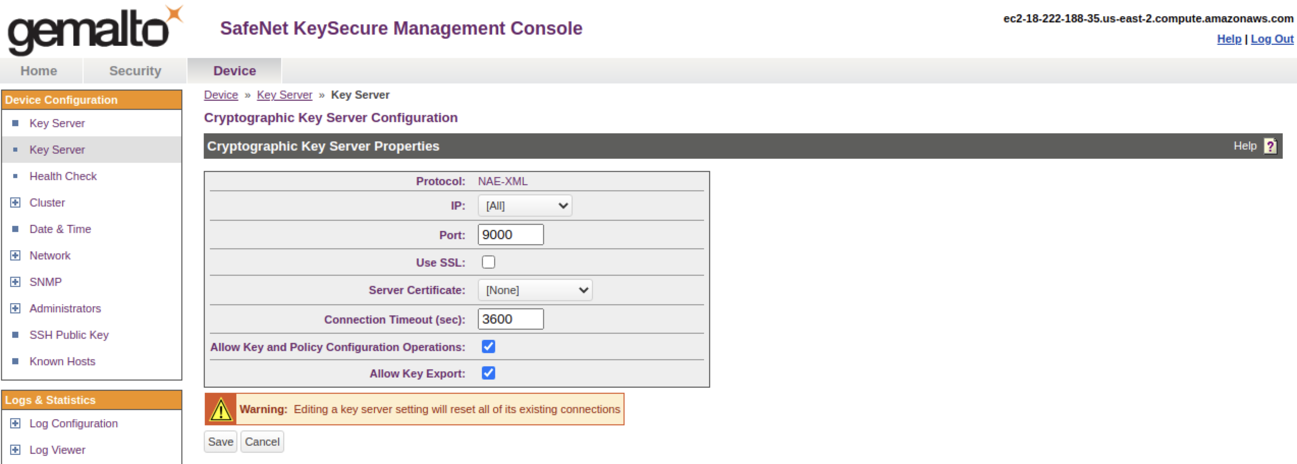 Configure SSL on Safenet Keysecure (NAE-XML)