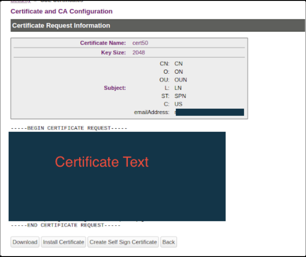 - Copy the text of the certificate request. The copied text must include the header (-----BEGIN CERTIFICATE REQUEST-----) and footer (-----END CERTIFICATE REQUEST-----).