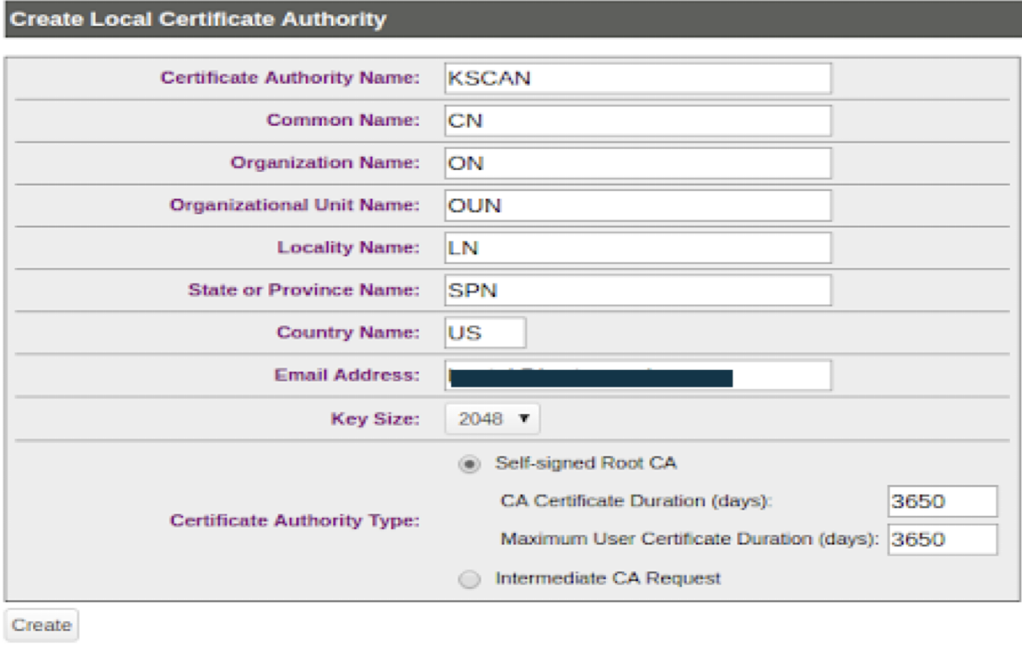 - Enter the required details and select Self-signed Root CA as the Certificate