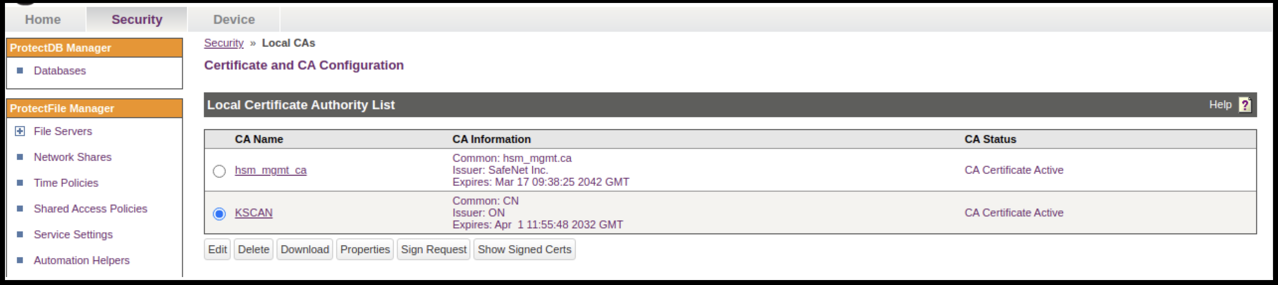 After SSL has been configured in Safenet KeySecure, perform the following steps.