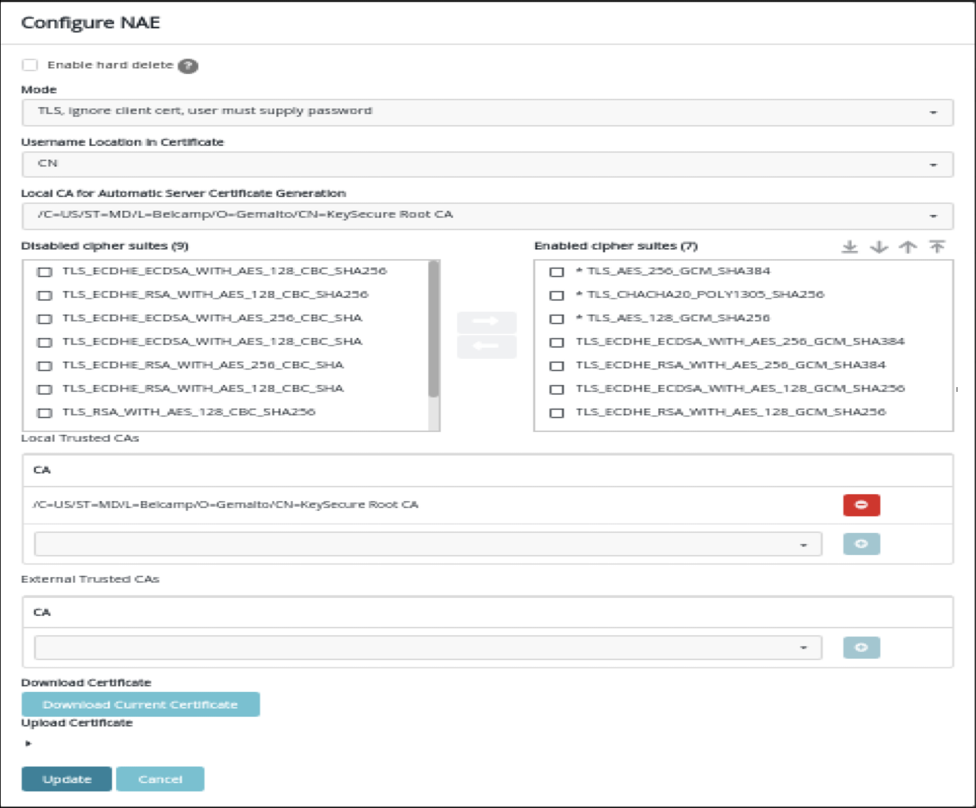 This task describes how to integrate Ranger KMS DB with CipherTrust Manager Hardware Security Module (HSM). This process includes configuring the NAE port in Thales Cipher Trust Manager, configuring Ranger DB KMS to interact with Thales CipherTrust HSM, or, migrating Ranger KMS DB Master Key To CipherTrust Manager HSM, and migrating the master key from CipherTrust Manager HSM to Ranger KMS DB.
