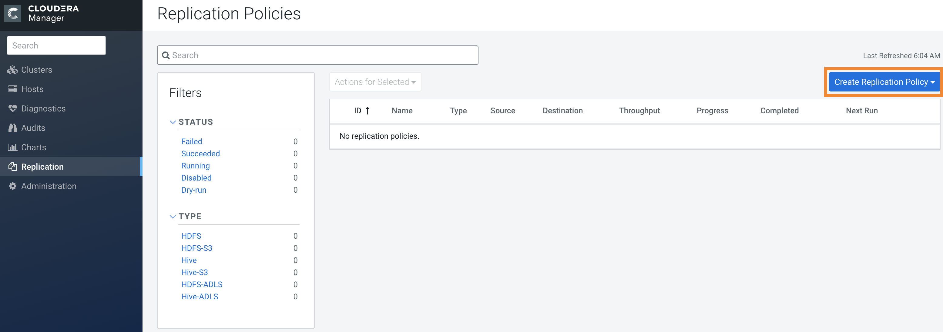 You must set up your clusters before you create a Hive/Impala replication policy.