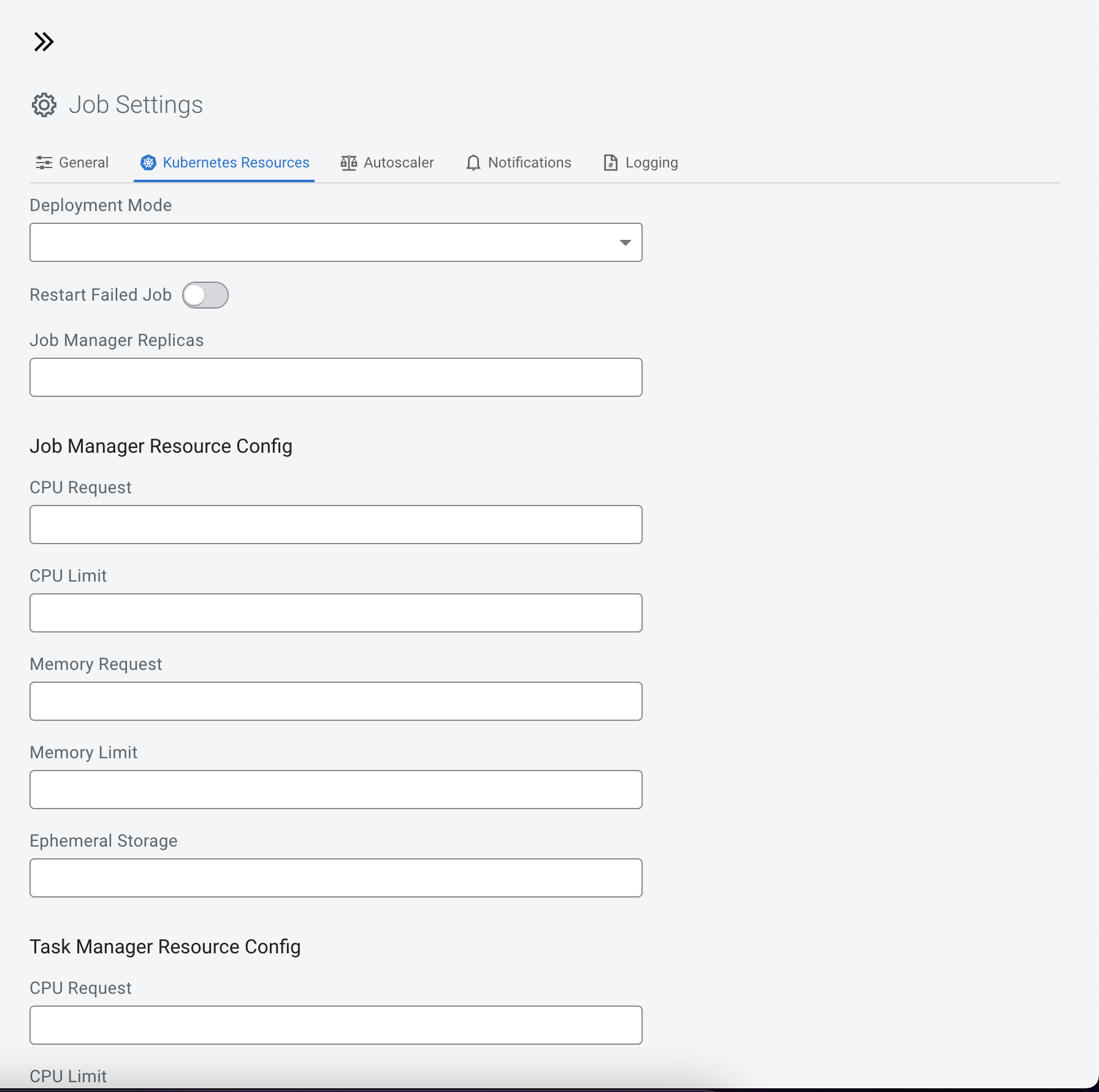 Before launching a new SQL job, you can set the following configurations for your job on Streaming SQL Console on the Kubernetes Resources tab: