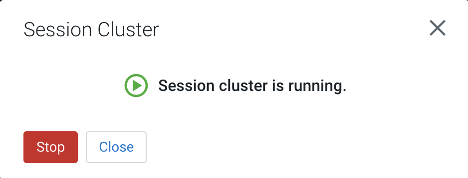If a session cluster is running, the dialog window will show its state, and you can click Stop to terminate it.