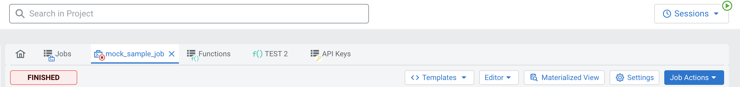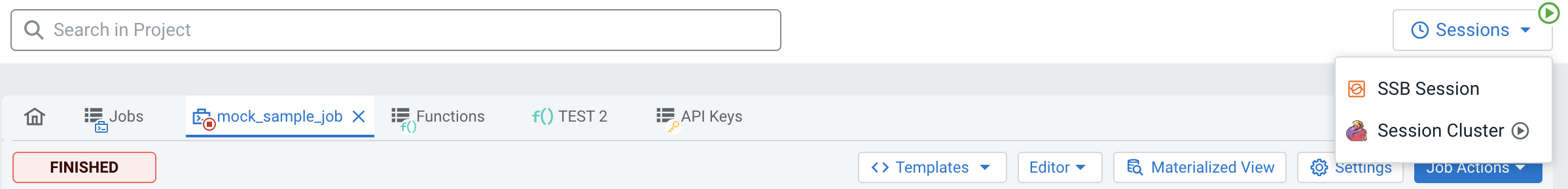 After logging in to Cloudera SQL Stream Builder, use the Sessions button in the top right corner of the UI.