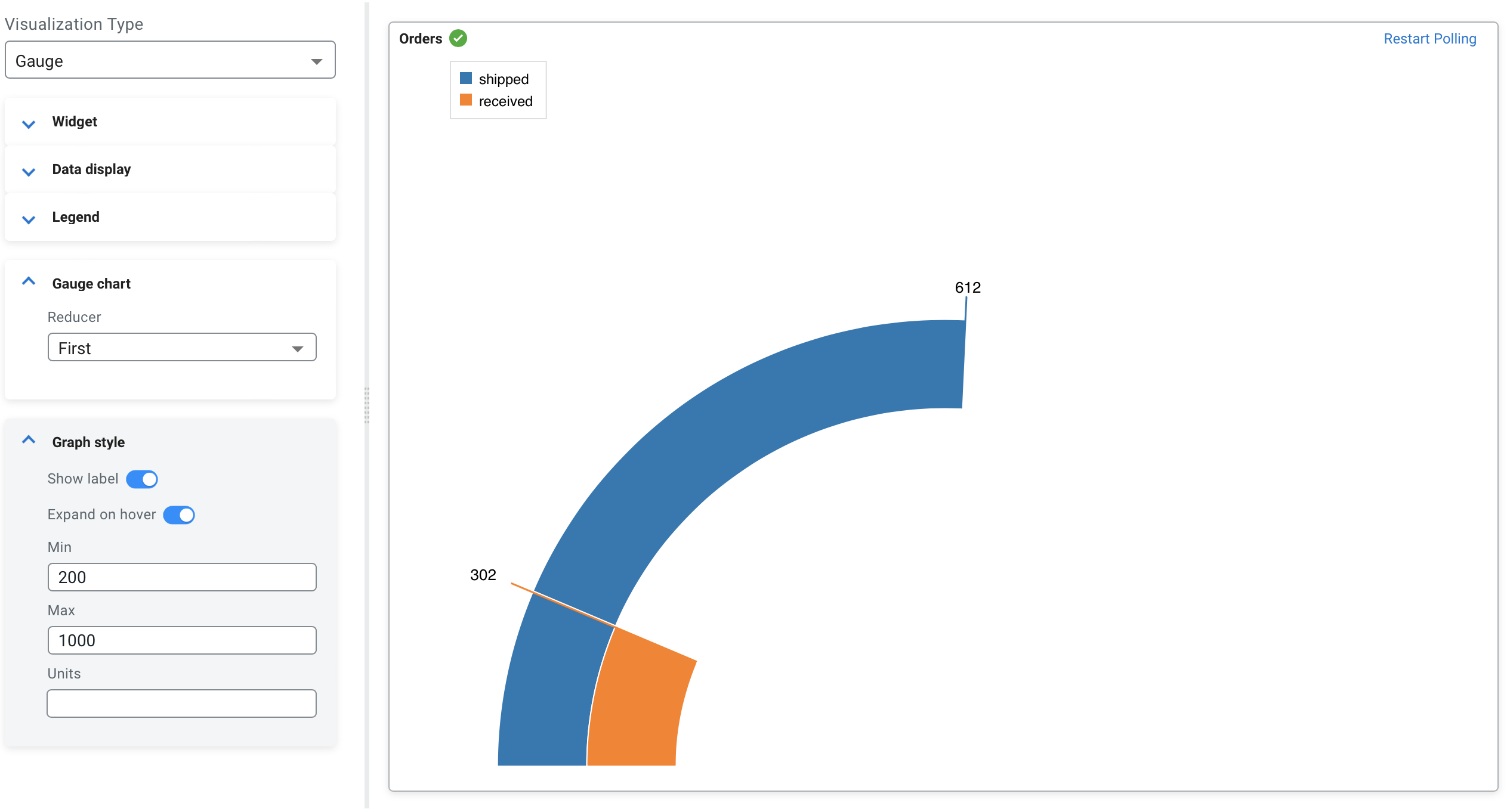 Widgets allow you to choose from a variety of visualization types and customize them based on your requirements. Each visualization type has general configurations and its own graph style configuration that can be set when creating the widget.