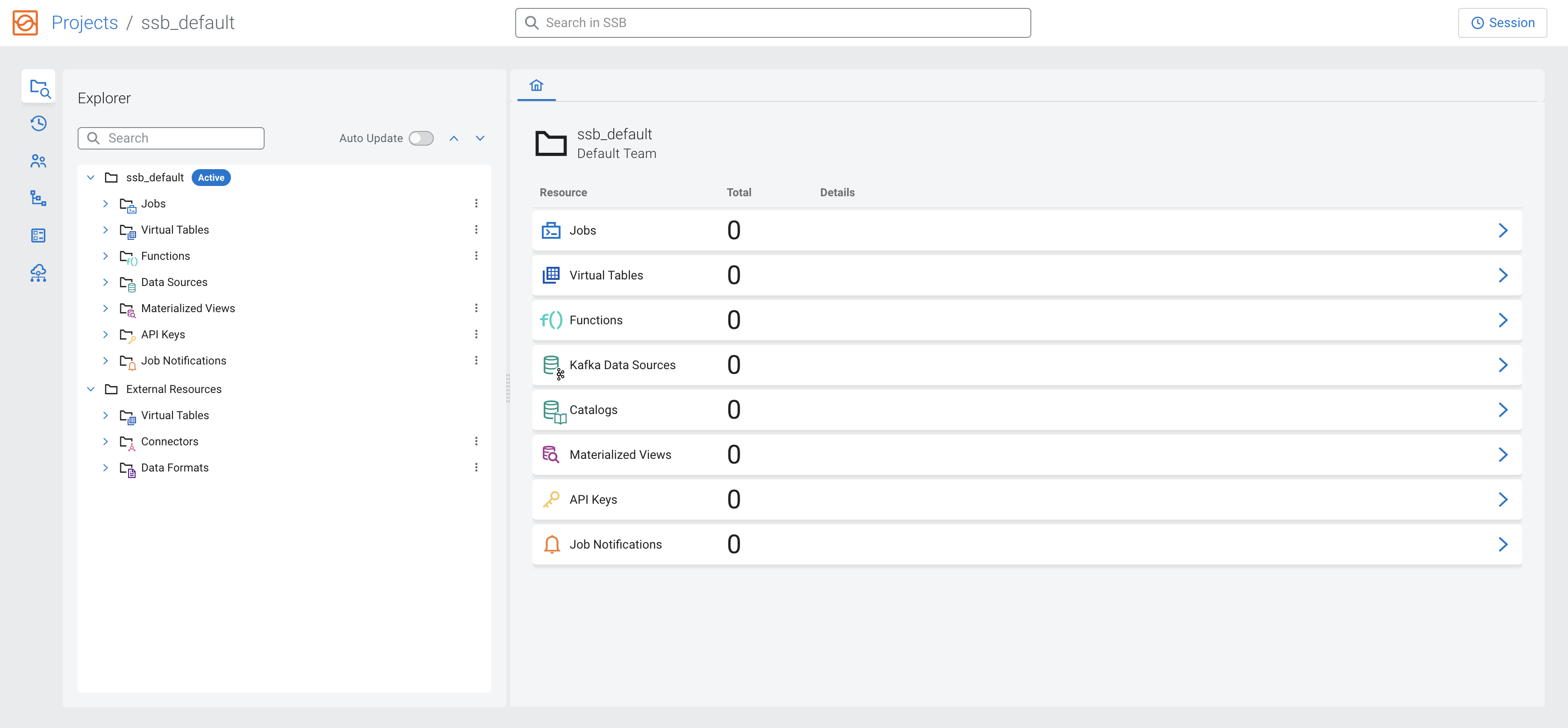 - When you start SSB, a session cluster is deployed to share and maintain resources. The submitted SQL jobs are executed as Flink jobs in the same session cluster that share a Job Manager. The properties for the session cluster can be viewed using the Streaming SQL Console, and can be modified with SET statements in the SQL window.