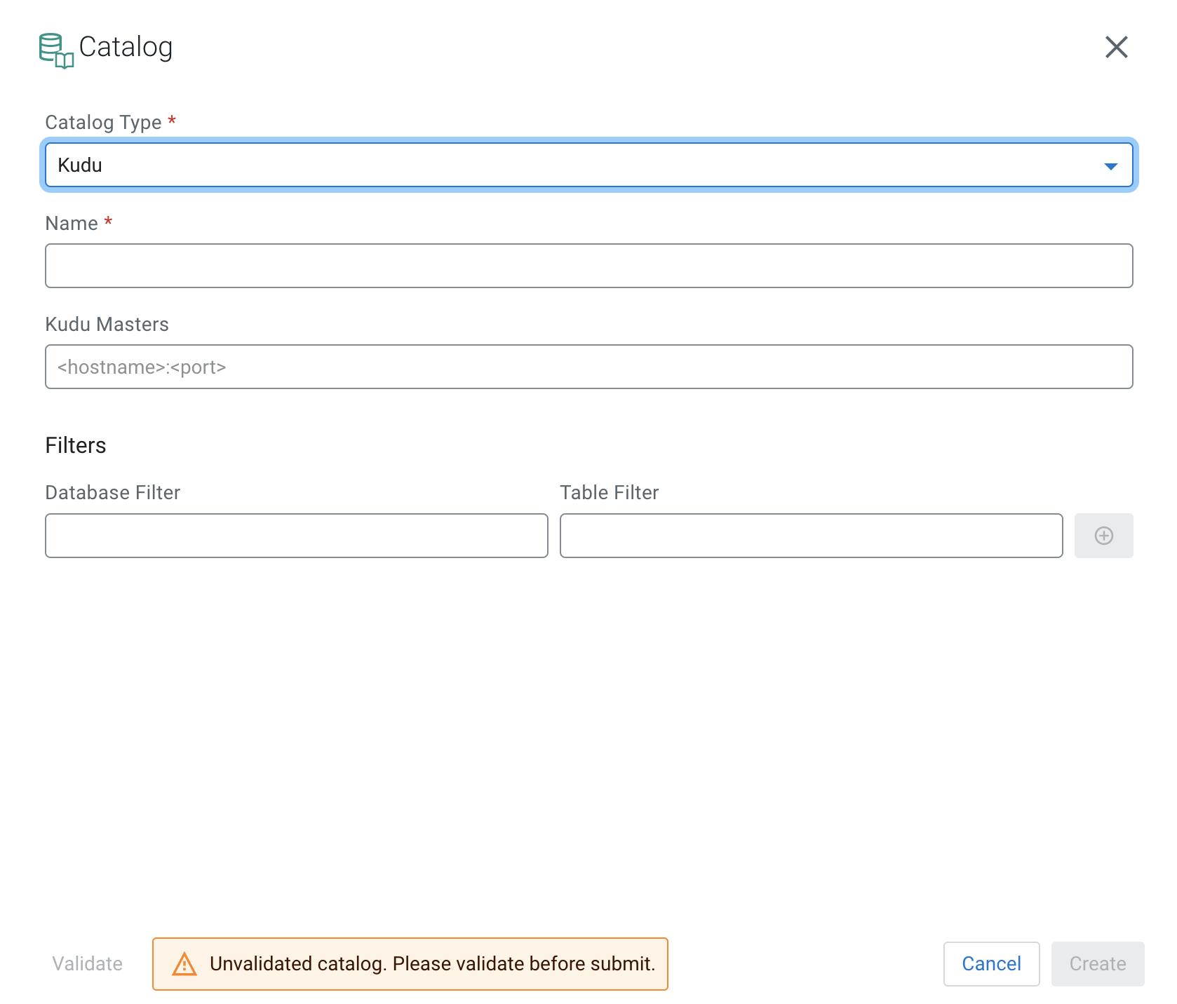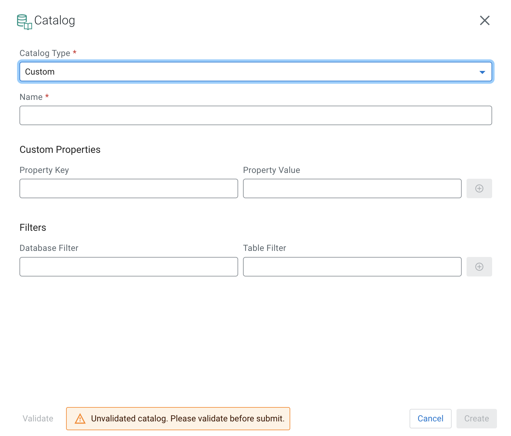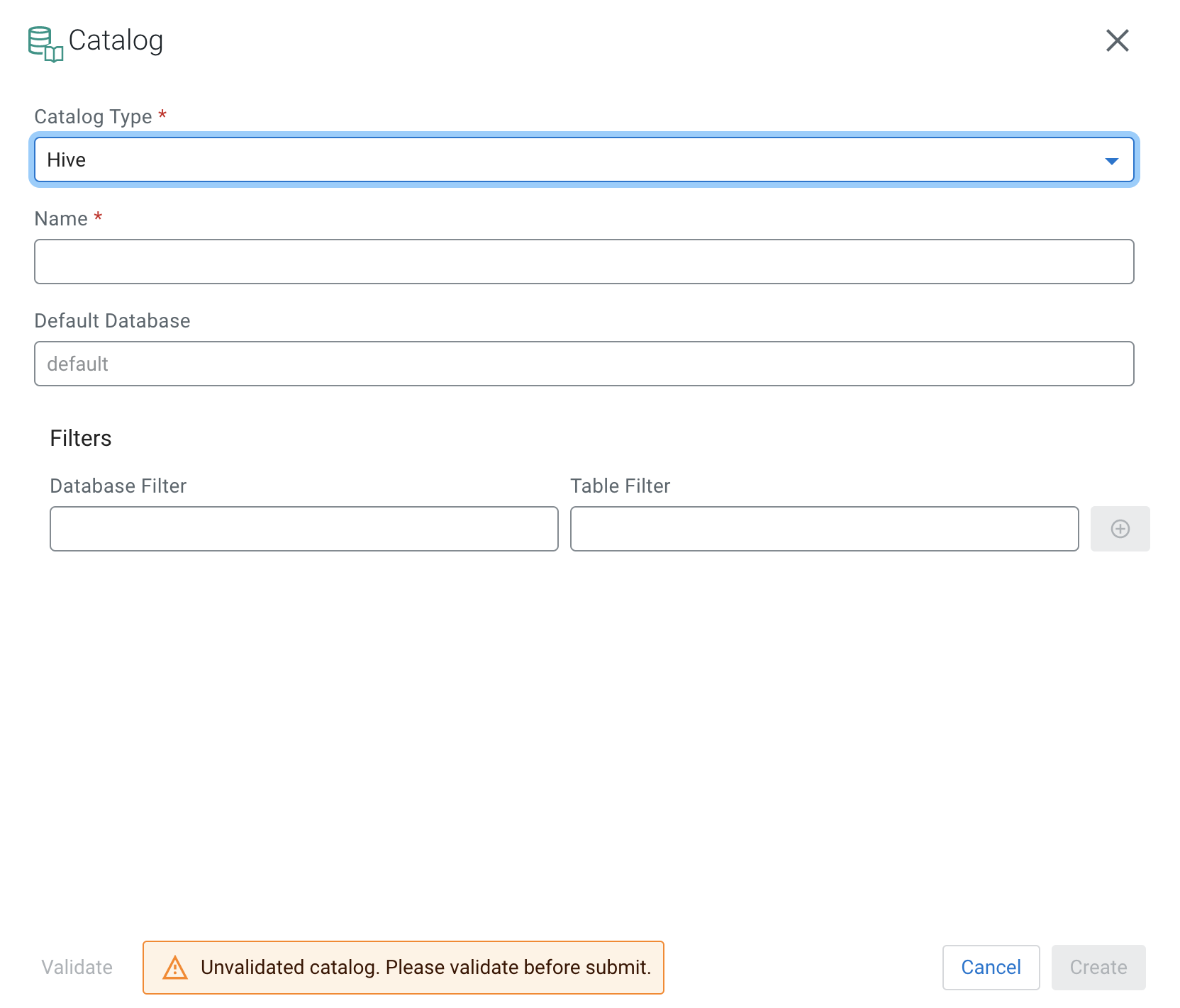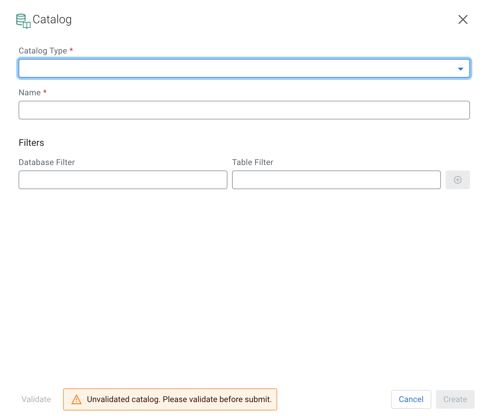 - Provide a Database and Table filter if you want to select specific tables to use from the catalog.