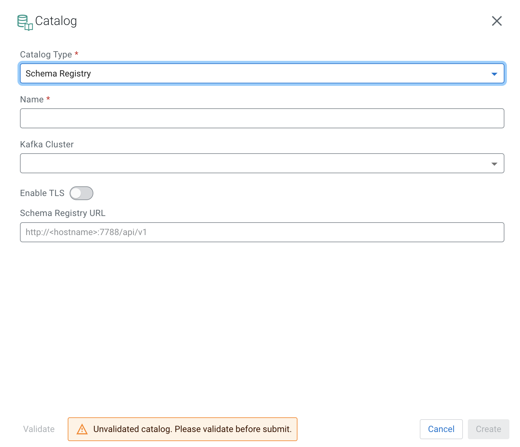 By default, the Schema Registry catalog looks for a topic in Kafka with the same name as the schemas stored in Cloudera Schema Registry. It uses the schema to deserialize the payload of the messages in that topic and ignores the message key. If you have different schemas to deserialize message key and payload you can define suffixes to differentiate them.For example, if you configure the catalog's schema key suffix as