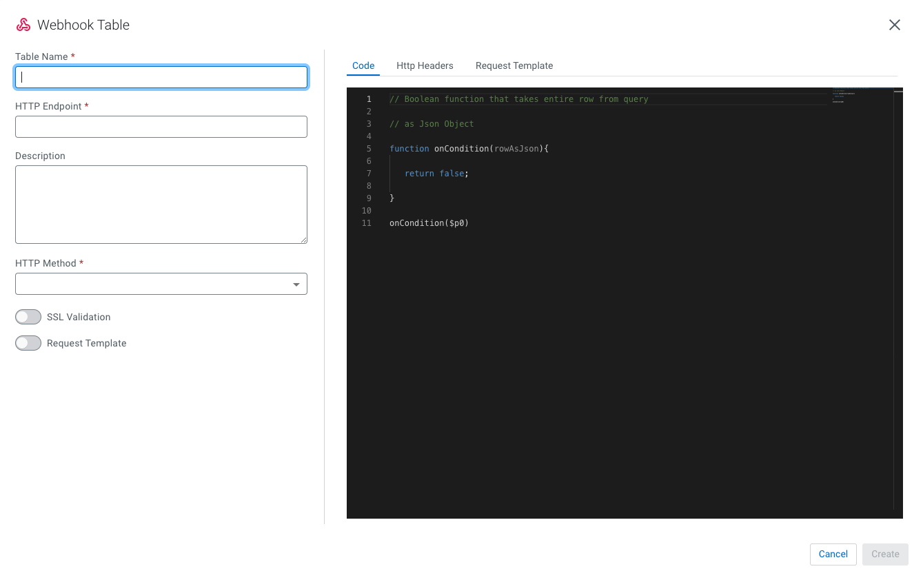 You can configure the webhook table to perform an HTTP action per message (default) or to create code that controls the frequency (for instance, every N messages). When developing webhook sinks, it is recommended to check your webhook before pointing at your true destination.