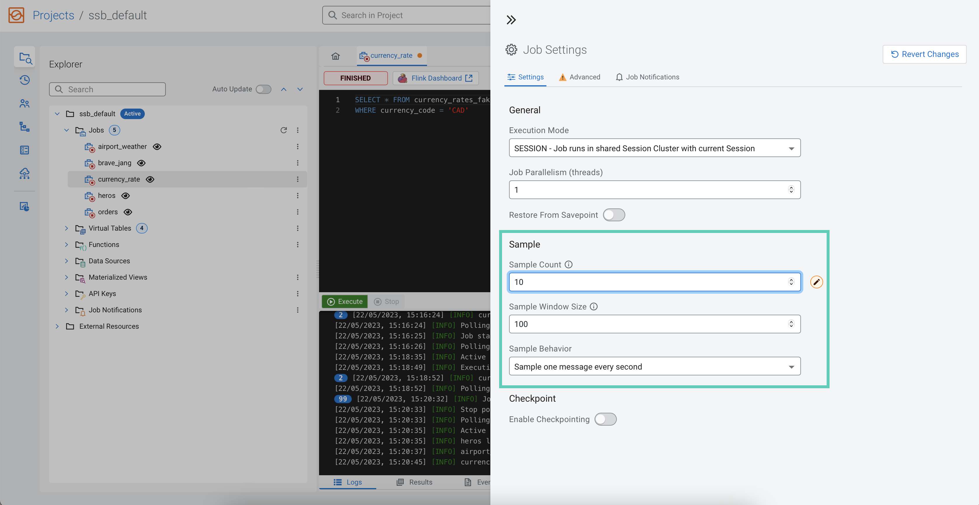 When using sampling as a data source, you must have a running job on Streaming SQL Console,