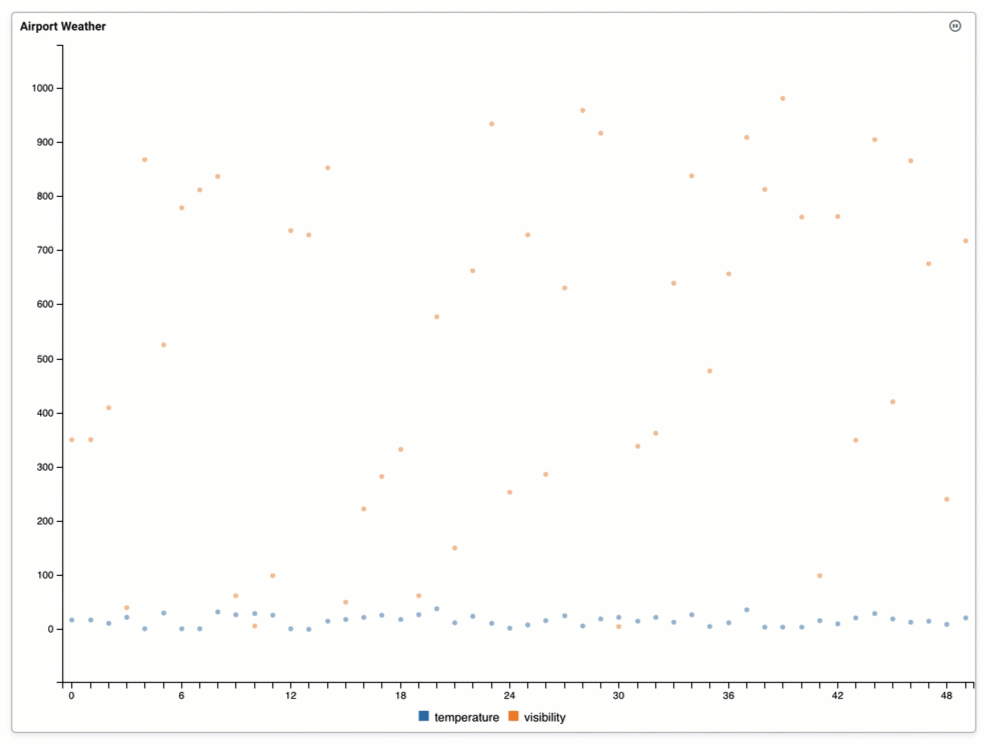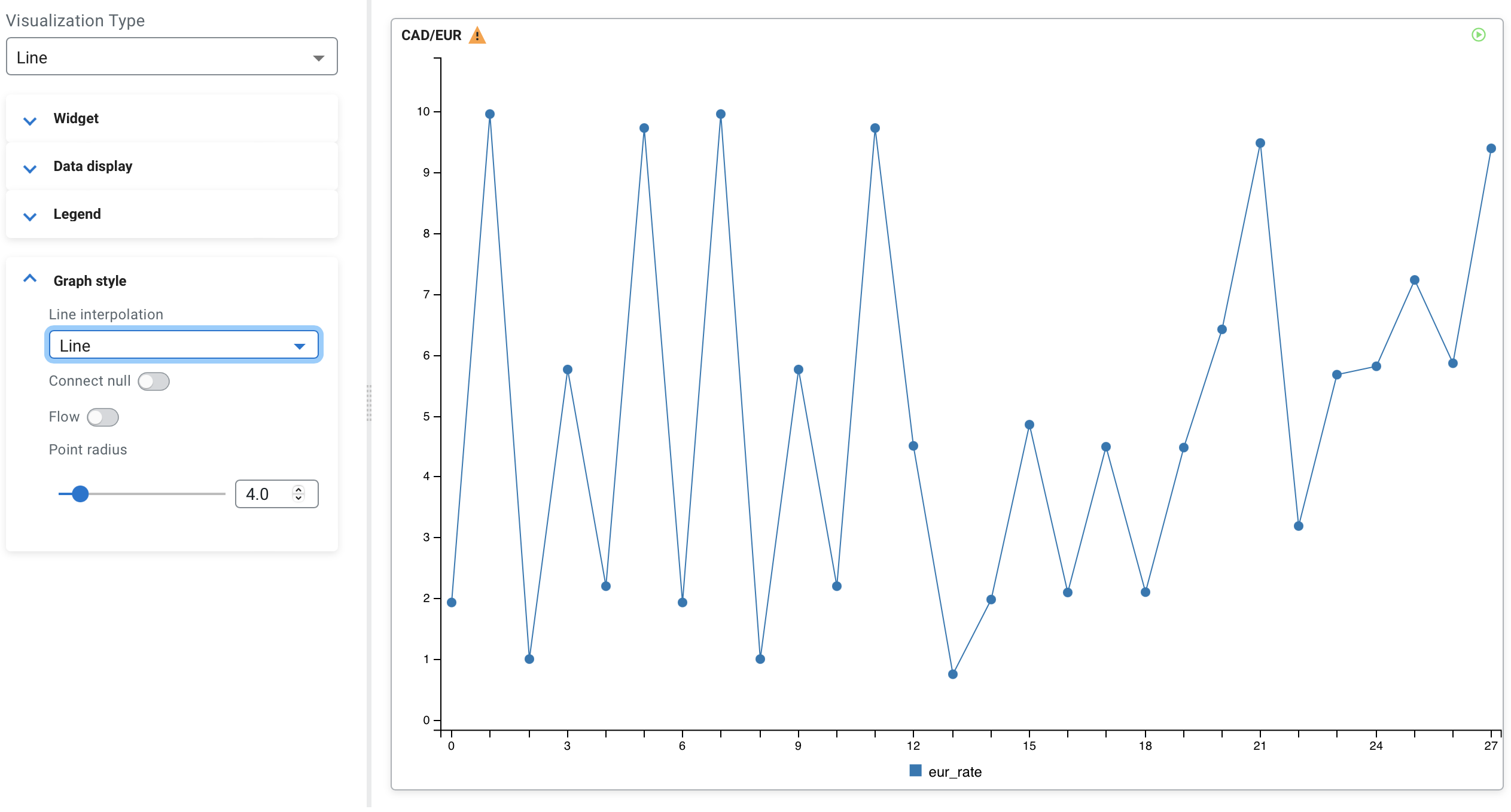 You can enable whether to show each data point in line using the Show points toggle. The size of the points can be changed using the Point radius configuration, which is set to 2.5 by default. The following example shows the enabled Show points with 4.0 Point radius: