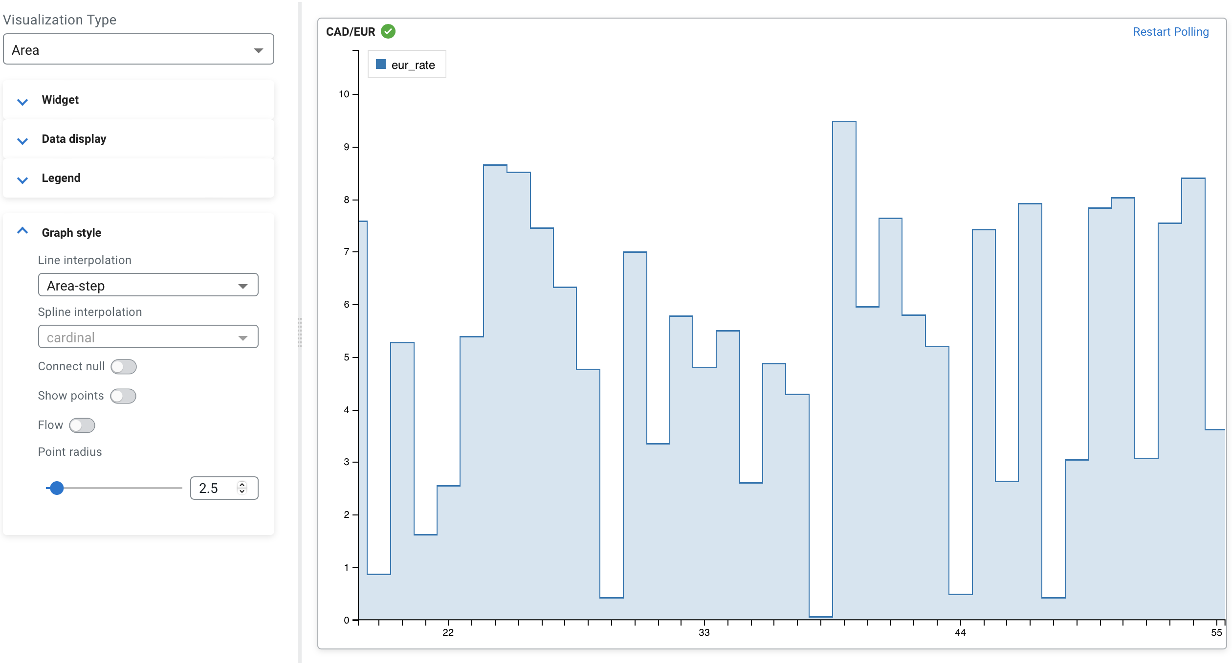 Determines the line interpolation of the visualization. You have the option to select Area-spline and Area-step for line interpolation.