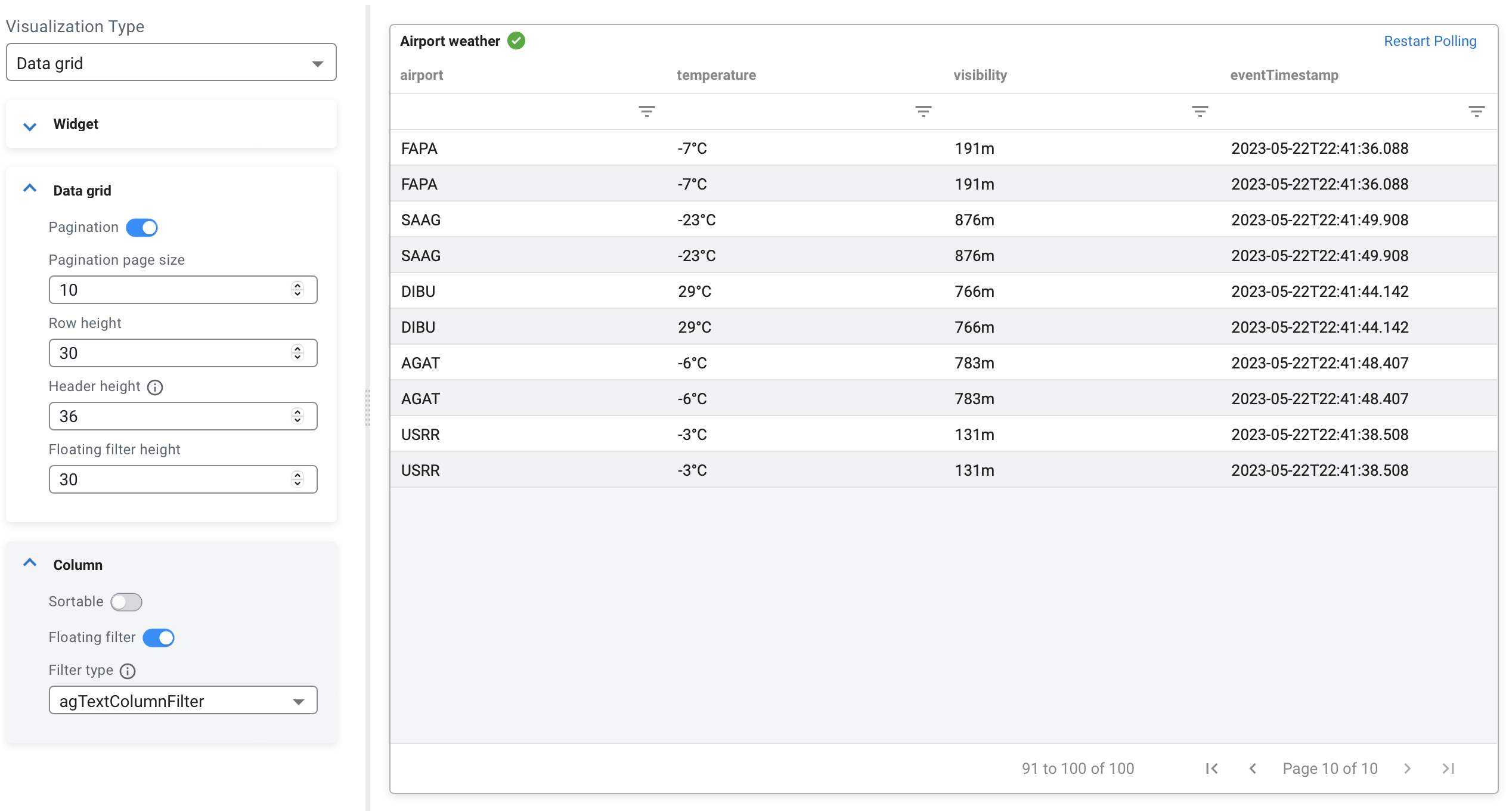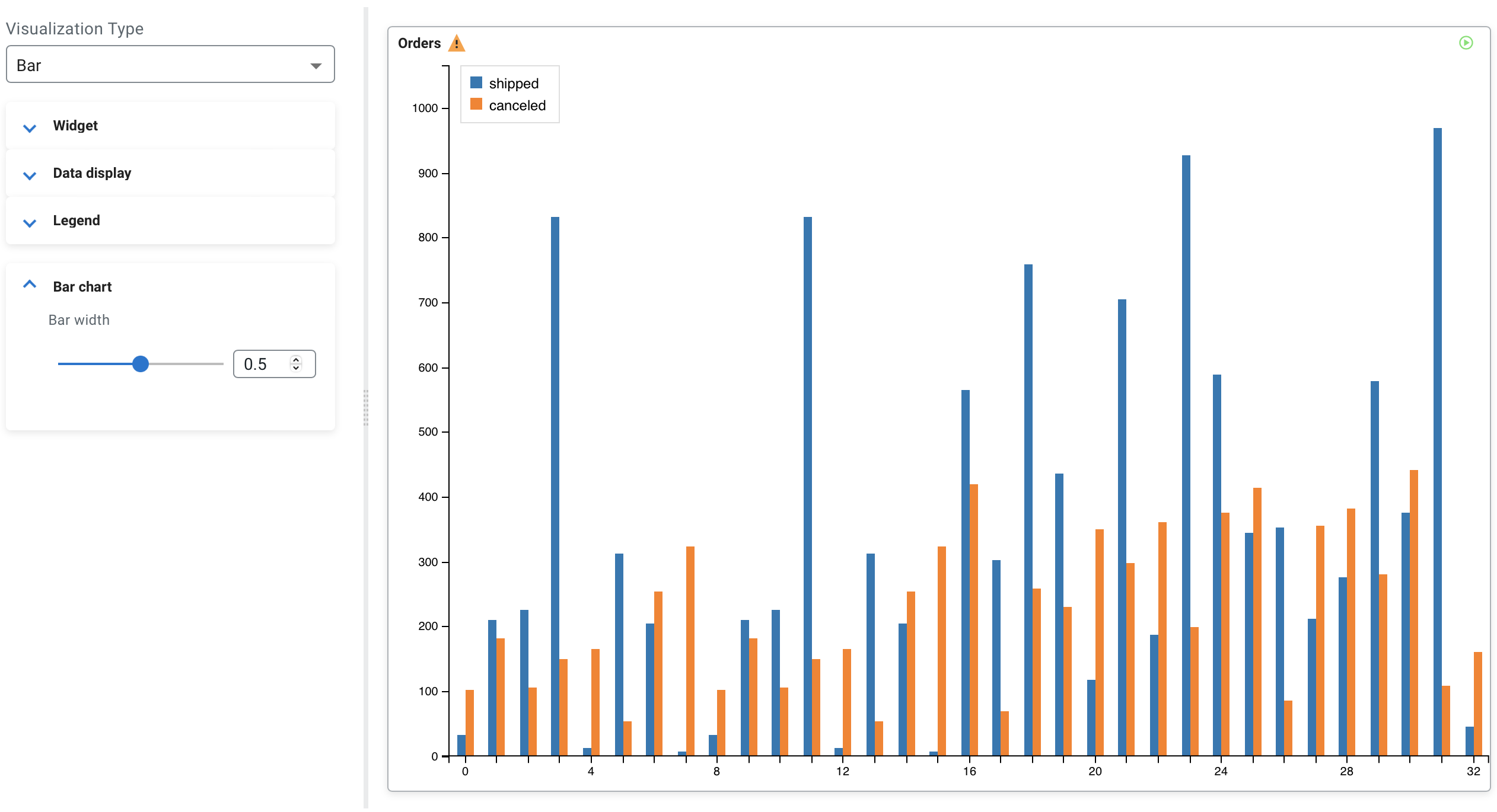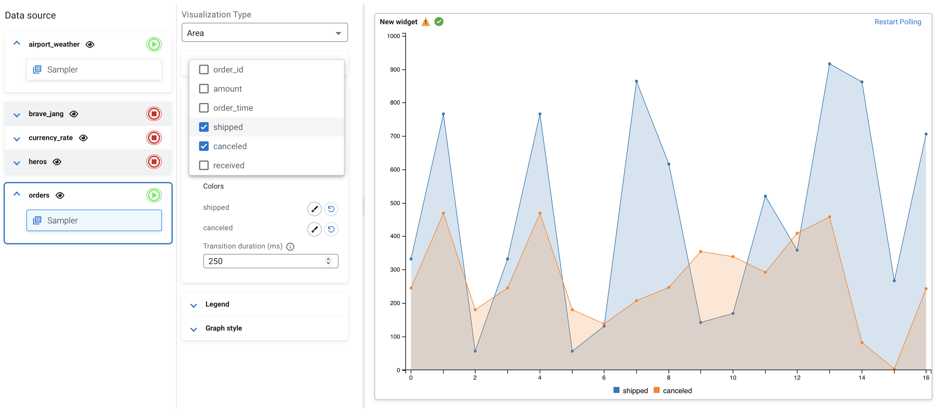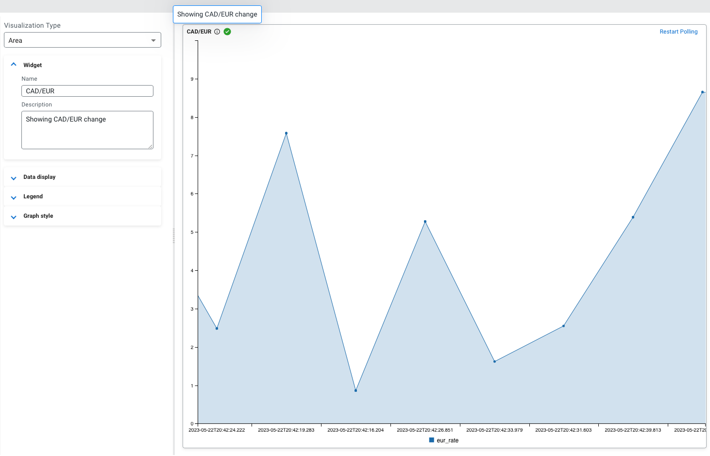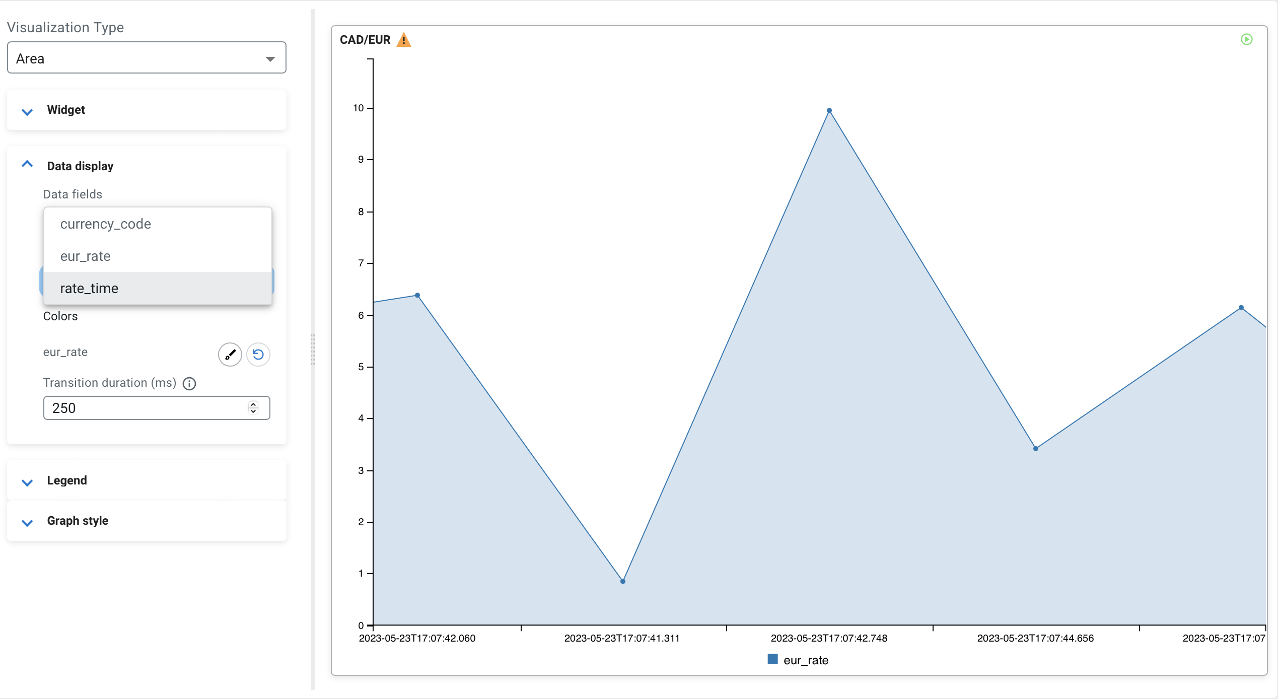 Widgets allow you to choose from a variety of visualization types and customize them based on your requirements. Each visualization type has general configurations and its own graph style configuration that can be set when creating the widget.