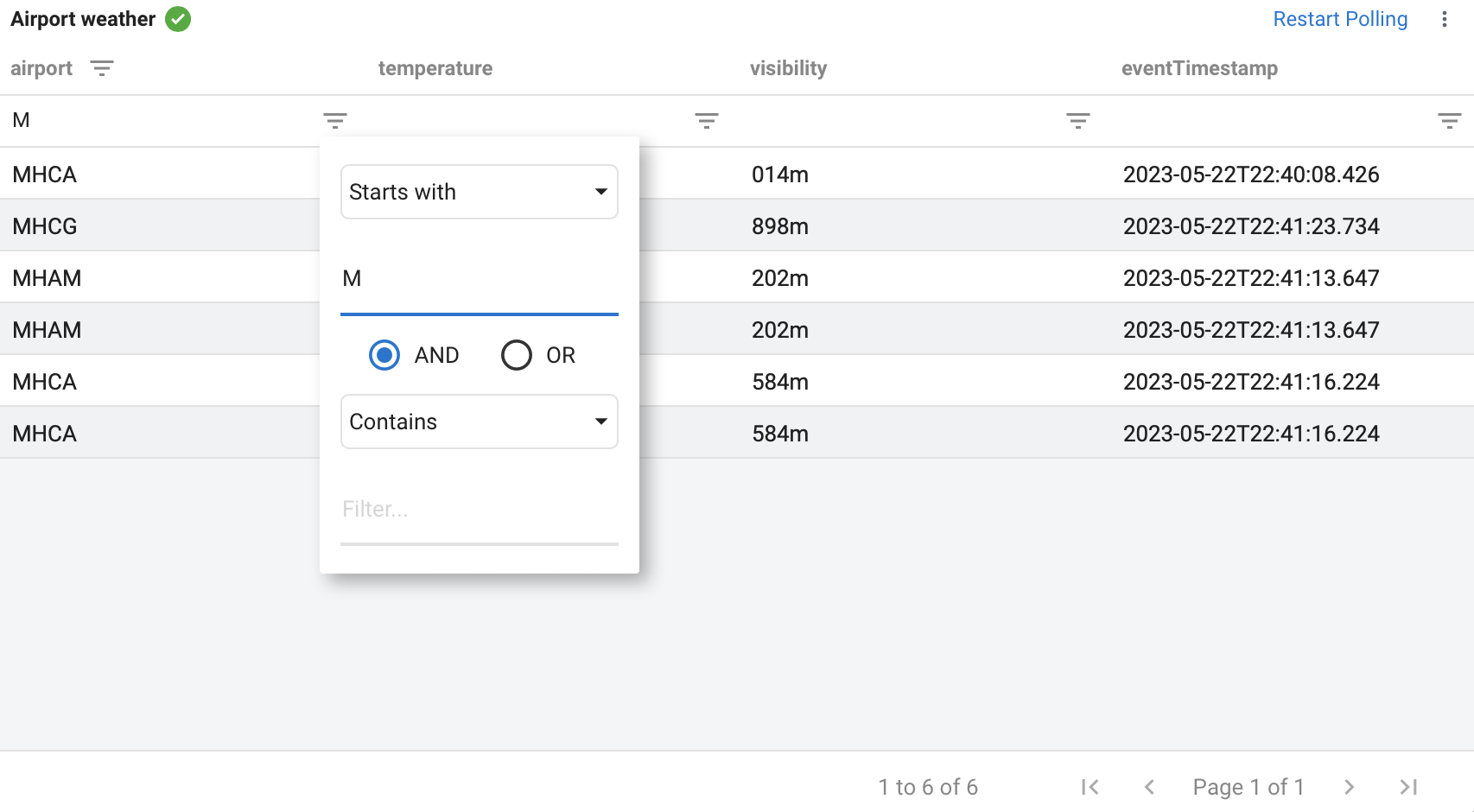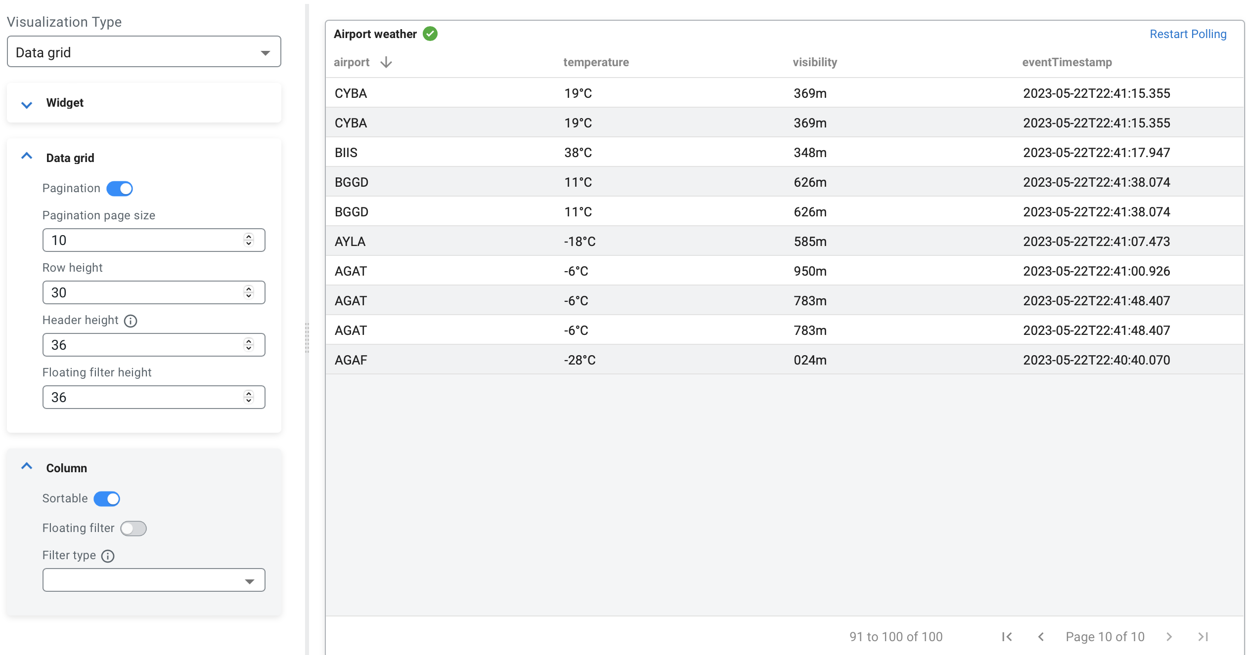 You can enable or disable sortable columns for the data grid. You can sort the data in the filtered column by clicking on the column name so the values are in increasing or decreasing order.