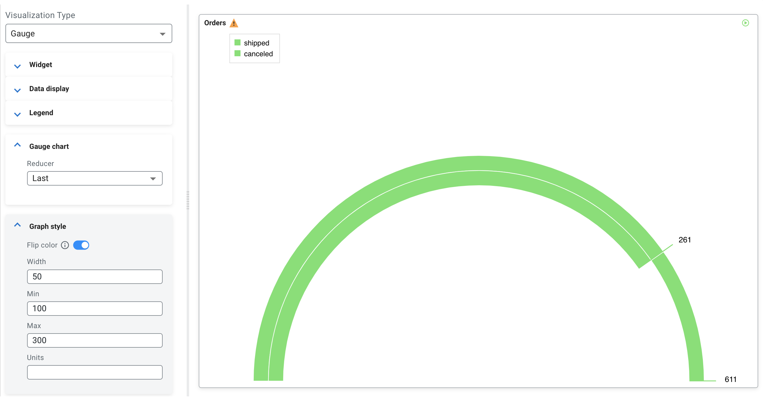 You can further customize the graph style of the Gauge widget with the following Graph style configurations: