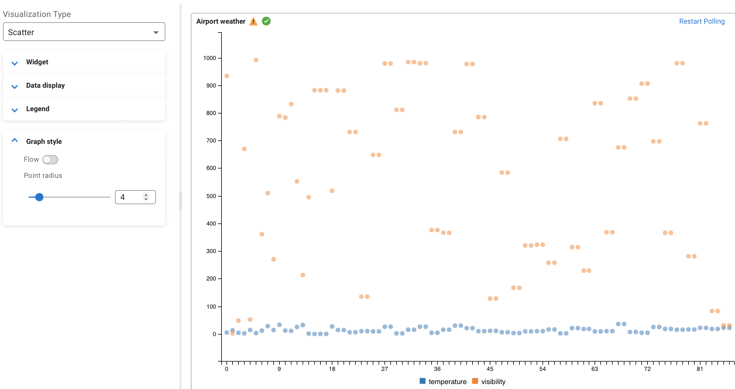 You can further customize the graph style of the Scatter widget with the following Graph style configurations: