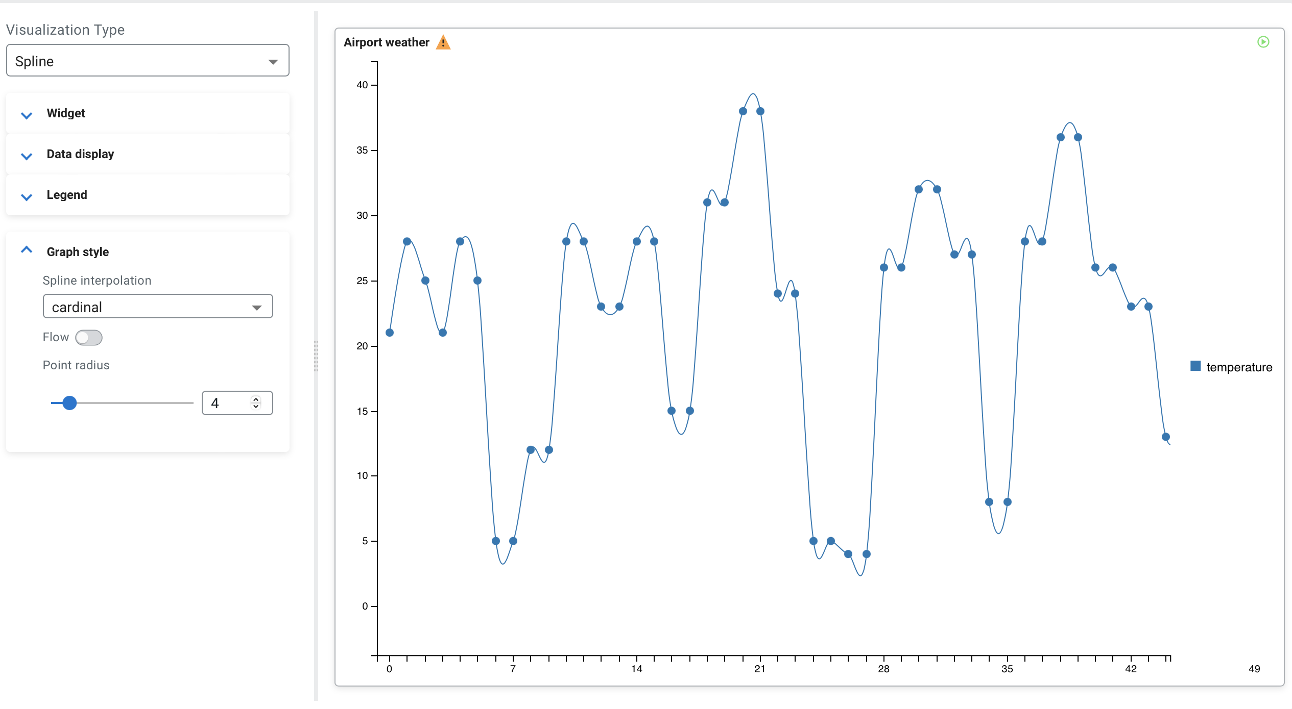 You can further customize the graph style of the Spline widget with the following Graph style configurations: