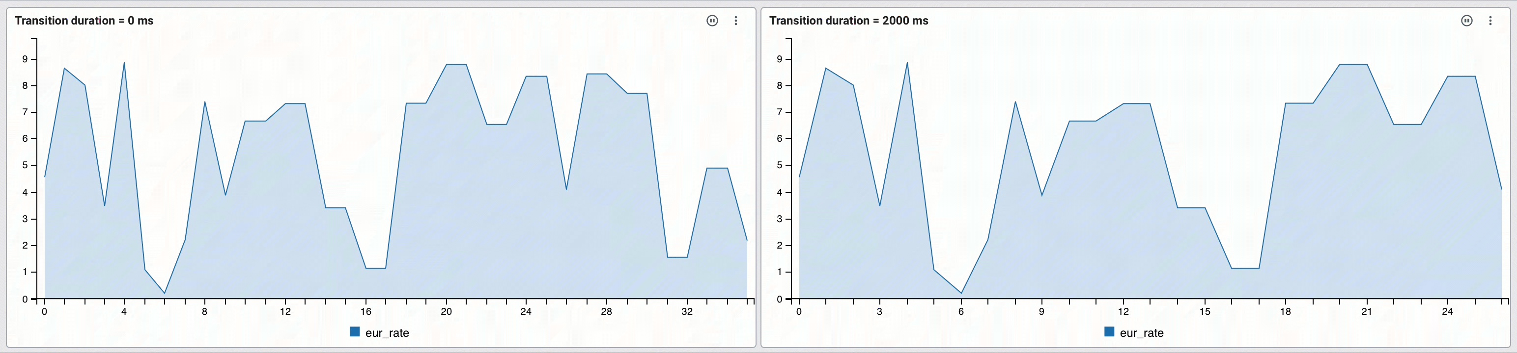 You can set the time for how slow or fast the data should change on the widget. The default is 250 ms. If set to 0 or left empty, the transition is skipped. The higher the time is set, the slower the visualization changes on the widget.