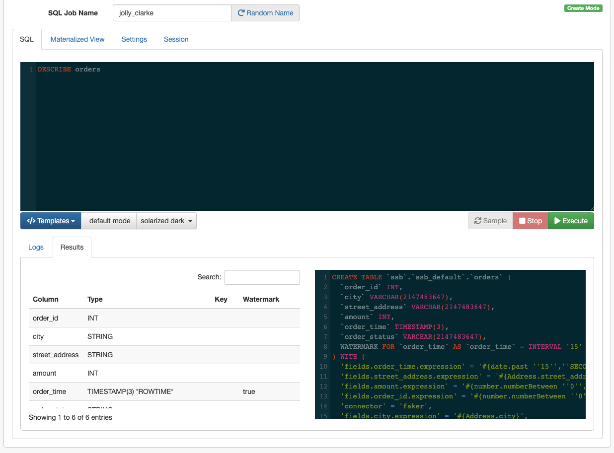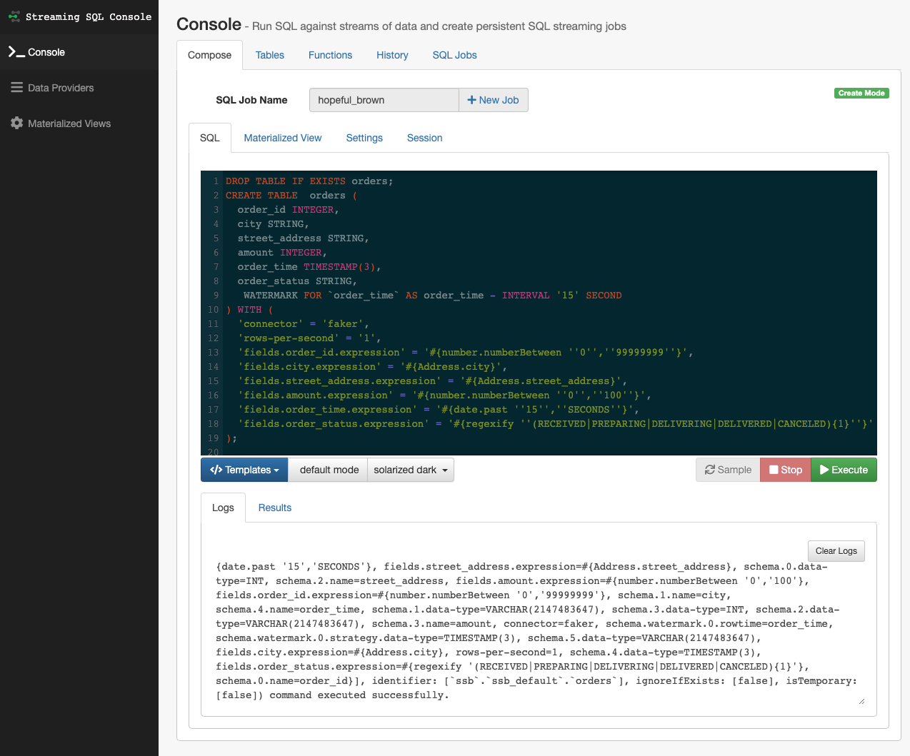 As a first step to use the Community Edition, learn how to create a table that generates random data using the included Faker connector after accessing the Streaming SQL Console.