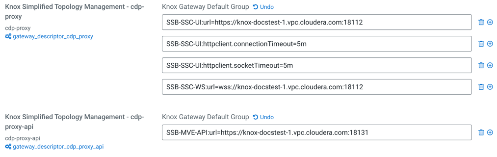 After creating the service definitions, you must add the SSB services to the Knox default topologies in Cloudera Manager.