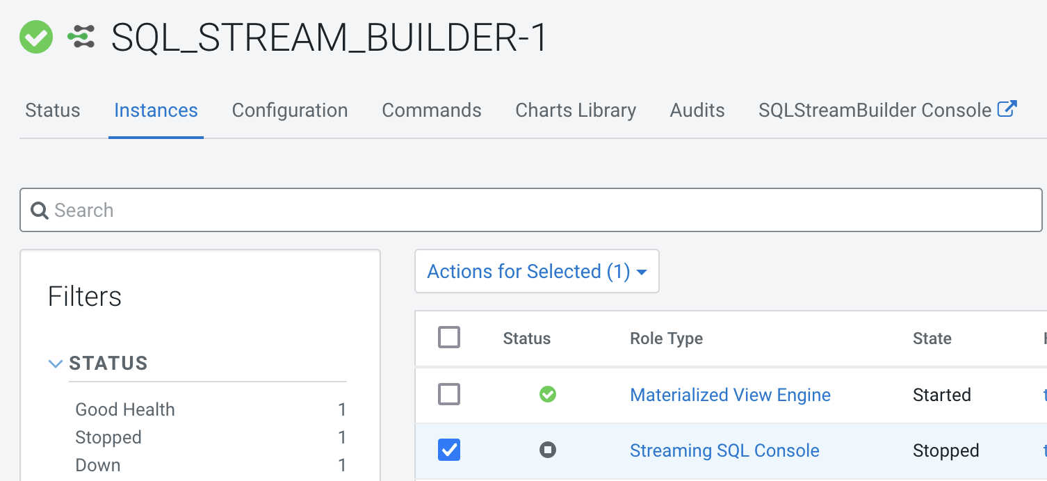 - Stop the SQL Stream Builder service using Actions > Stop next to the SQL Stream Builder service name.