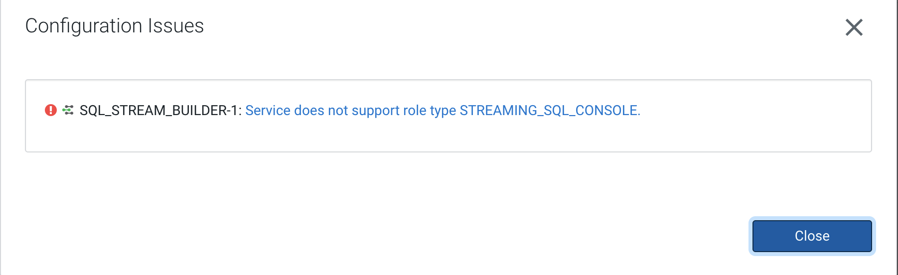 The following error message is displayed when reviewing the configuration issue: