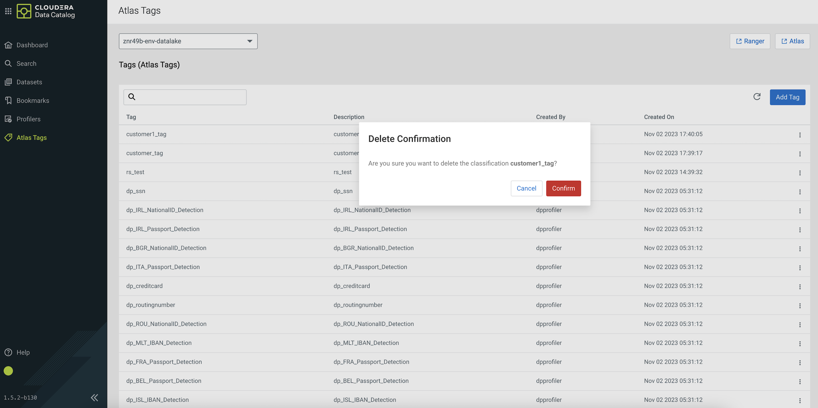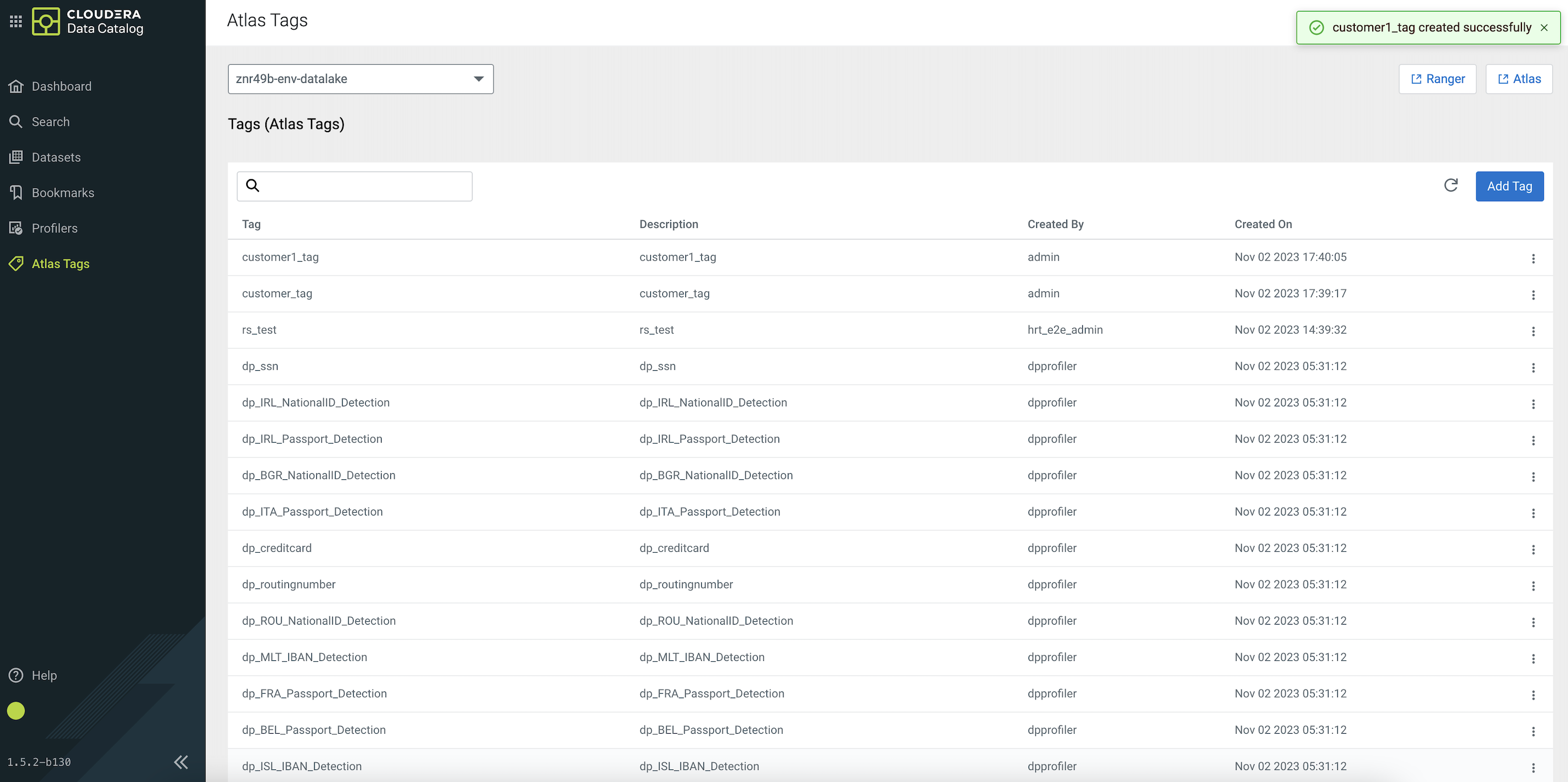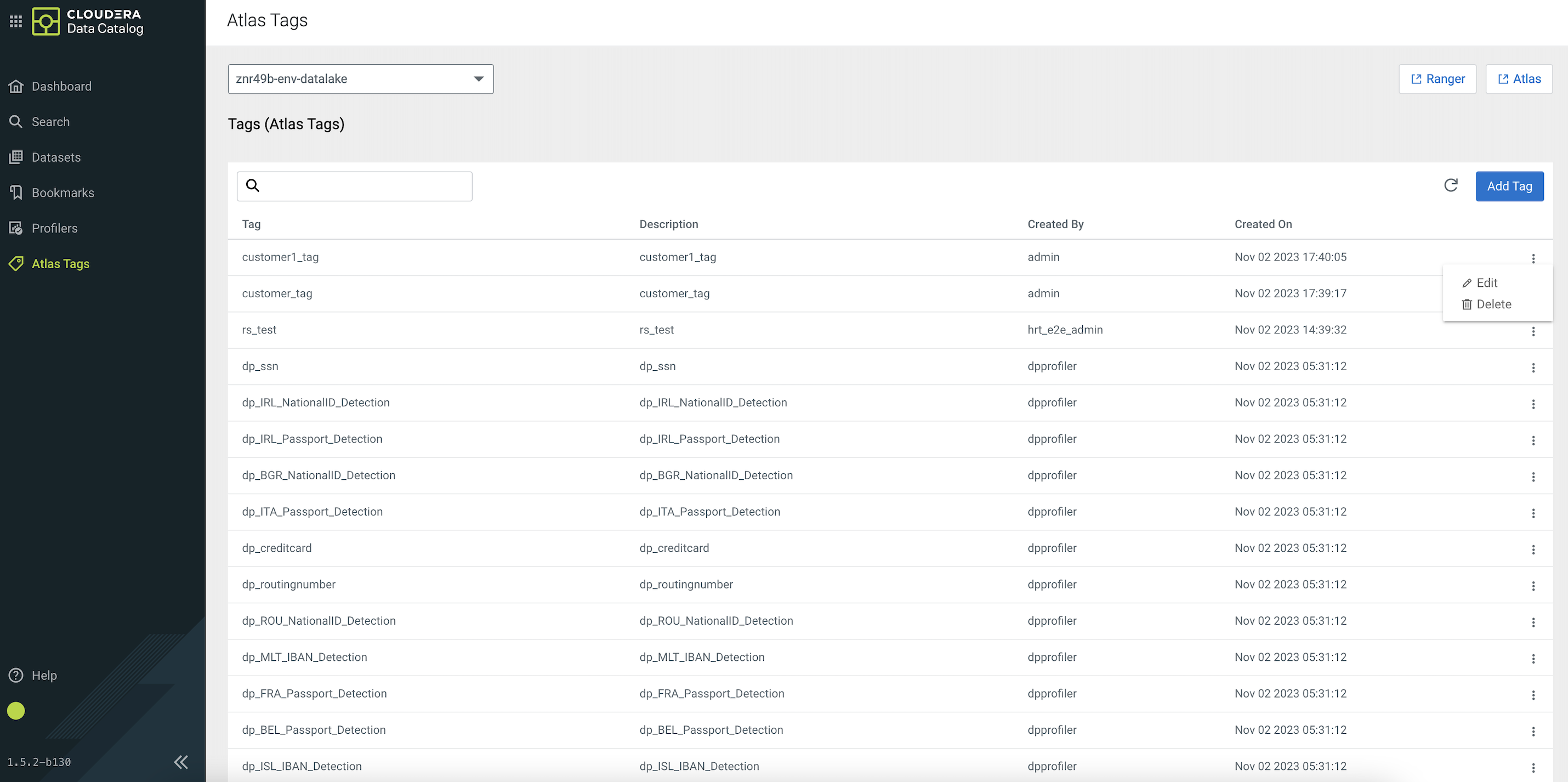Atlas Tags allows the user to perform the following activities with a selected Data Lake for tag management: