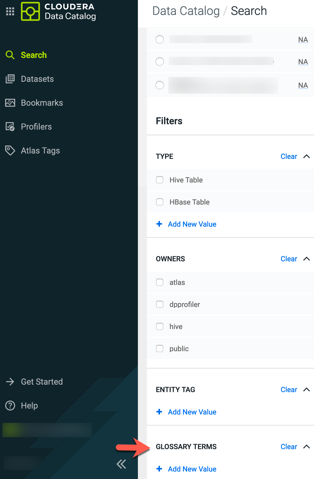 Searching for assets using glossary terms