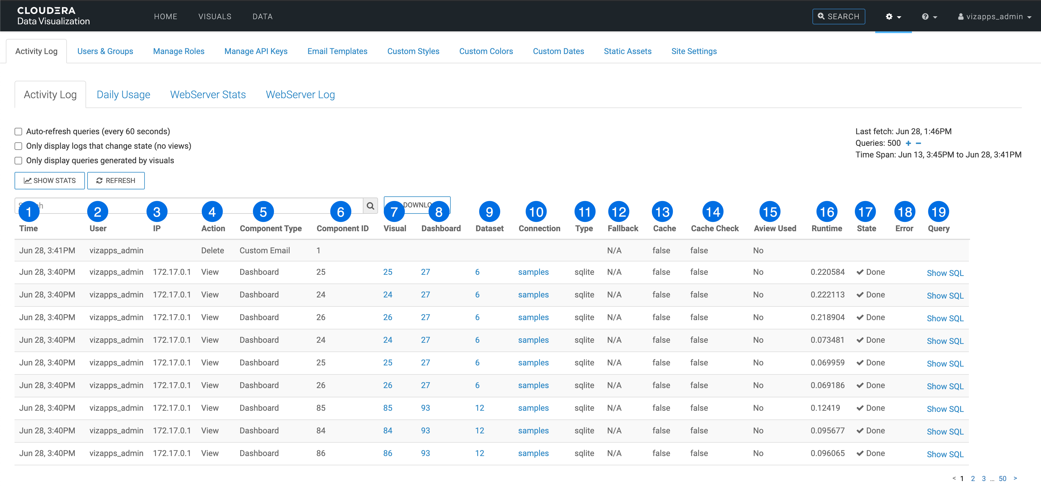 For example, this is the SQL statement for the first Dashboard (component ID=500):