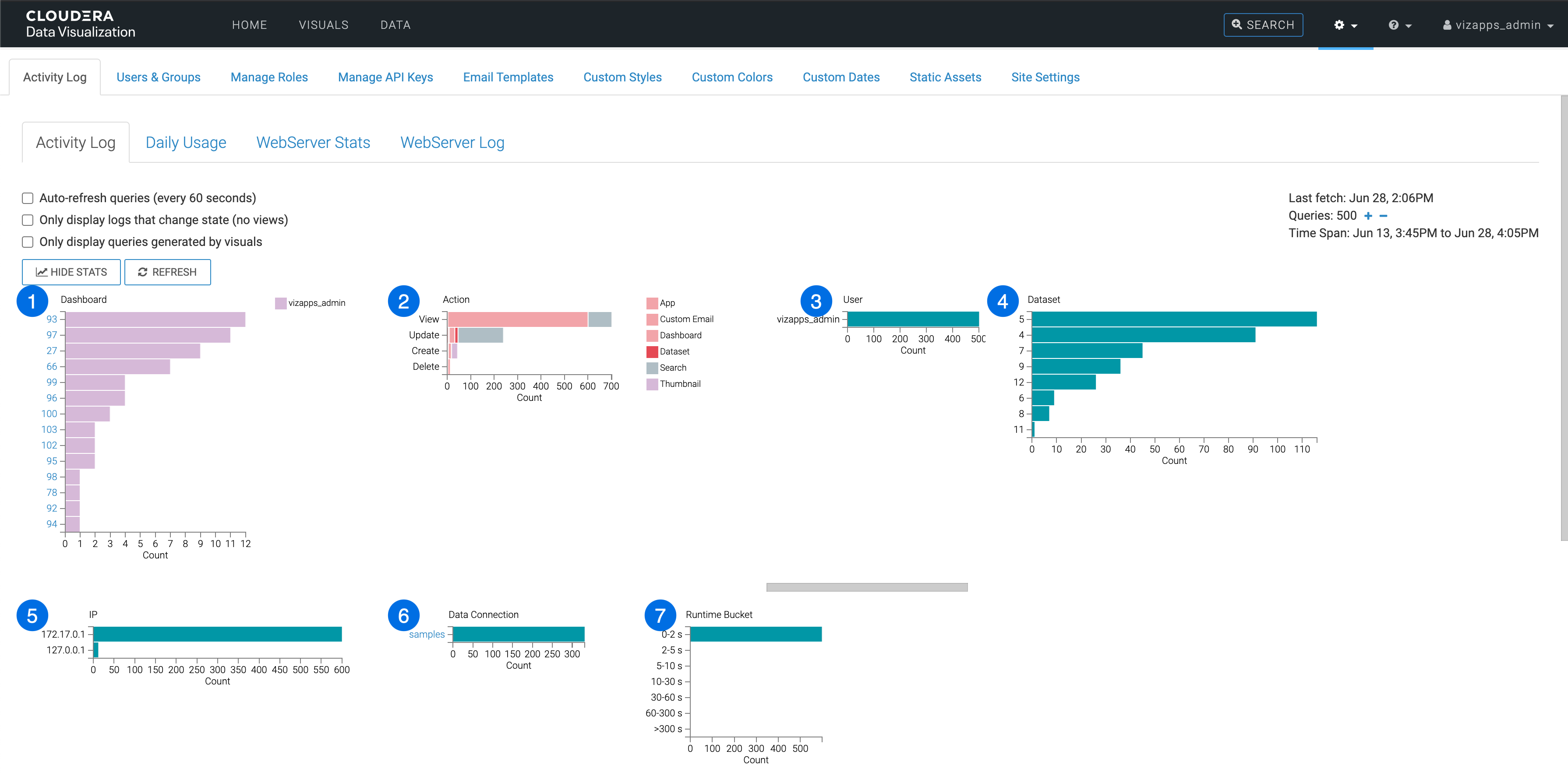 Statistical view of Activity Log
