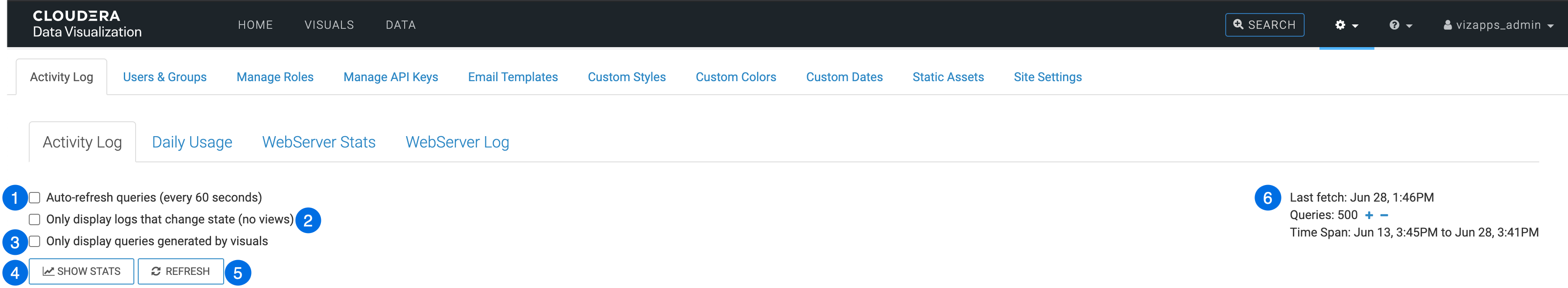 In the Activity Log interface, note the following features that are common to both the List view of Activity Log and Statistical View of Activity Log of this interface: