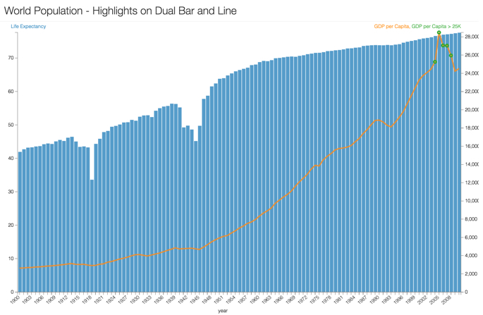 using the visual World Population - Dual Bar and Line, developed on dataset