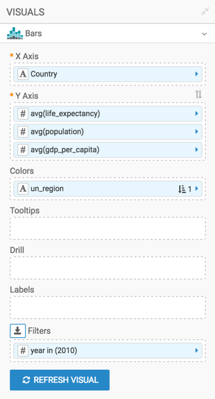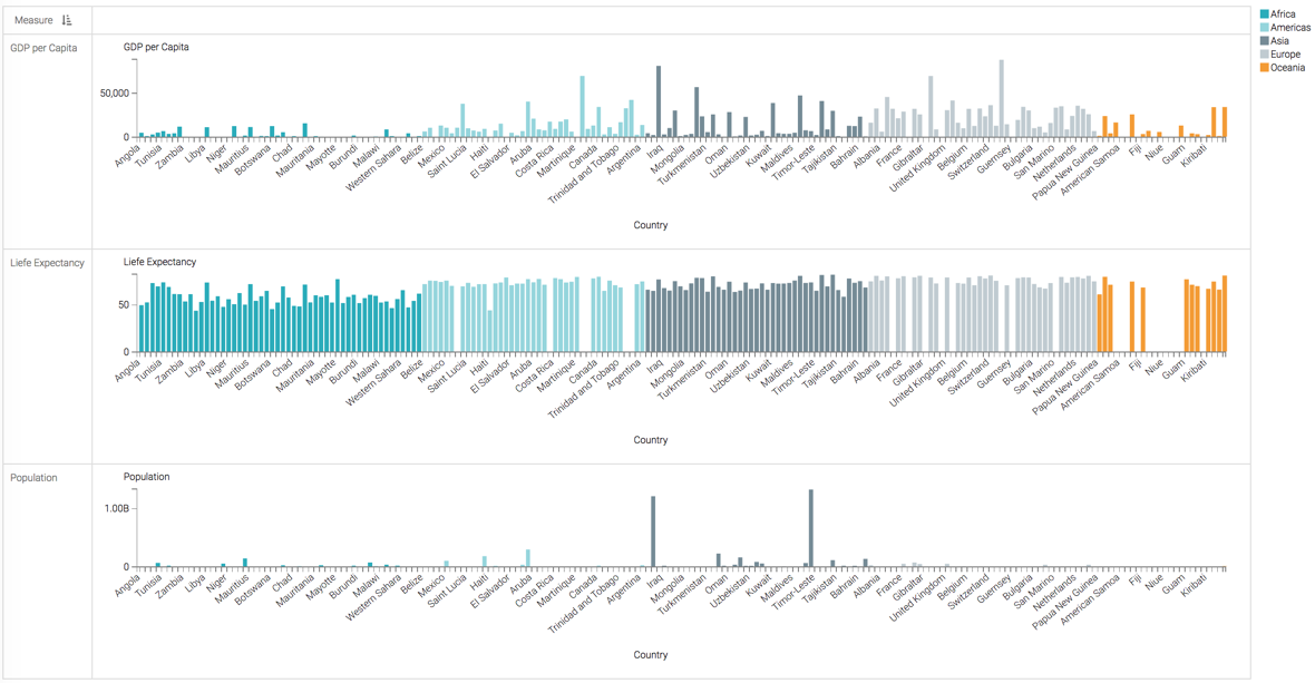 Some visual types (bars, lines, areas, and grouped bars) may be trellised on measures,