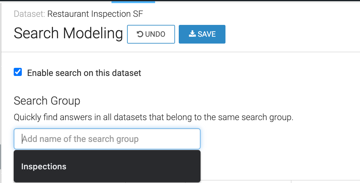 Data Visualization enables you to group datasets for Natural Language Search (NLS). You can use a group to more easily combine datasets during search operations.