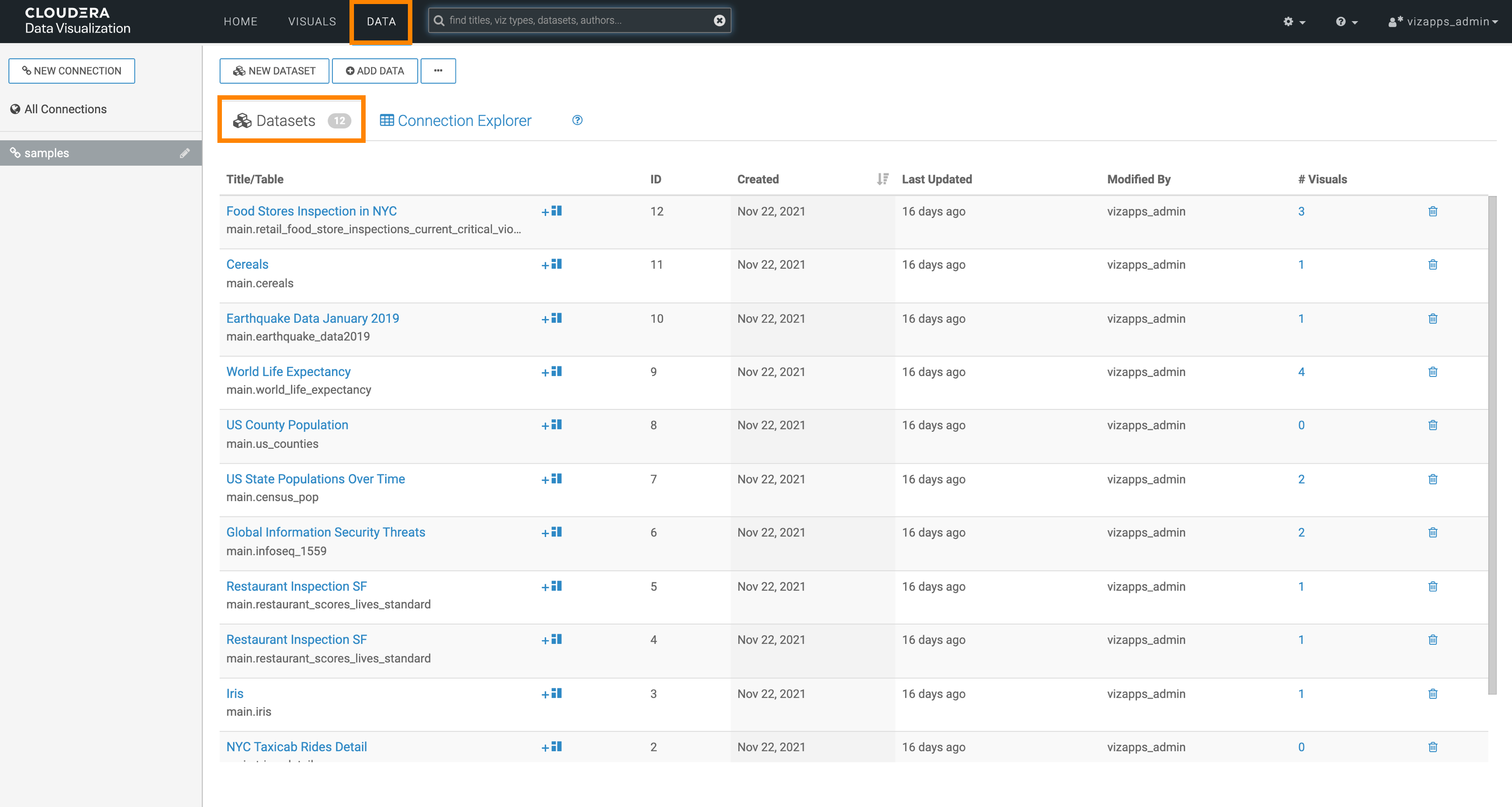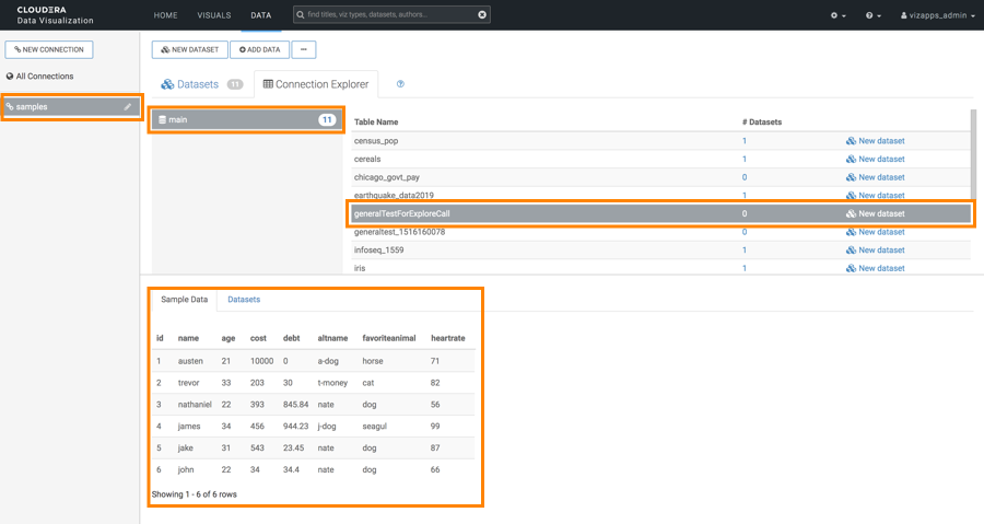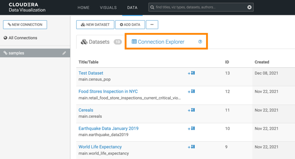 Learn how you can navigate to the Connection Explorer interface and use it to connect to data in CDP Data Visualization.