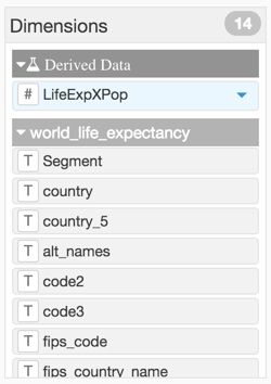 Popto the Dimensions shelf. We do this because fields on the Measure shelf must be aggregated, but the definition ofPopalready includes the summation over thepopulationfield. -