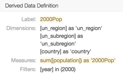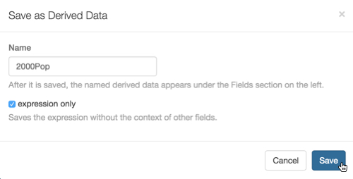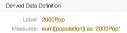 This is the default option, when the entire context of the derived data expression can be captured and re-used. In our earlier example, the definition of derived data includes Label, Dimensions, Measures, and Filters: