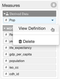 Data, select the derived measure you wish to check.