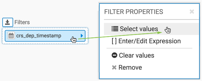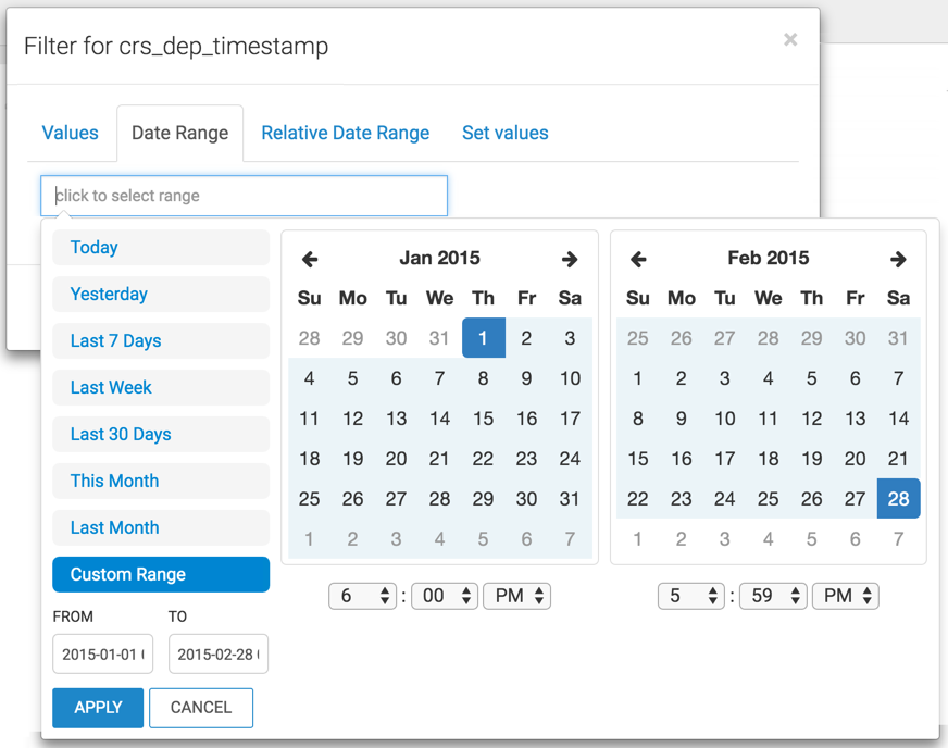 crs_dep_timestampmodal window, click the Date Range tab. - Click inside the textbox that contains the text.