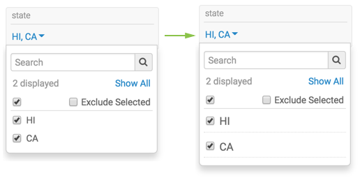 Note the resulting style changes to the application filter in View mode.