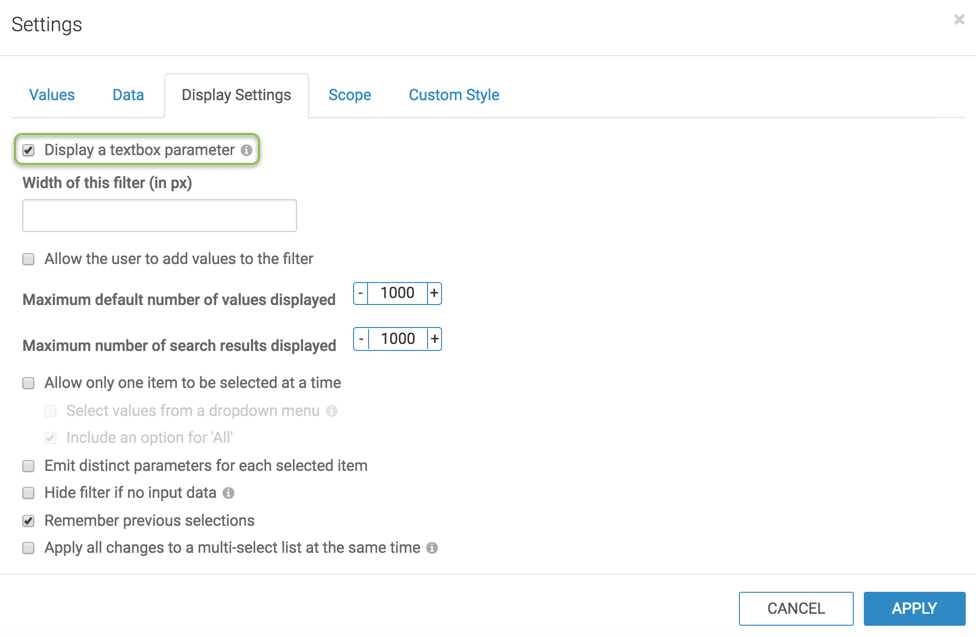 modal. Instead, the user enters a parameter value they want to use at runtime, or search for