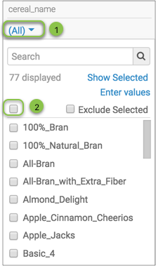 In single select mode on a cereal name filter, you can only look at details of one cereal. It may be interesting to look at information of all cereals at the same time.