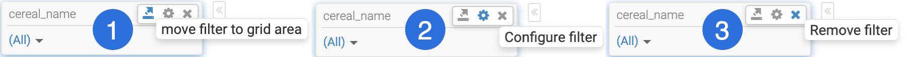 has several options for configuring the appearance of the application control element. These differ depending on the relative location of the application control. It can be on the filter area or on the grid area of the application.