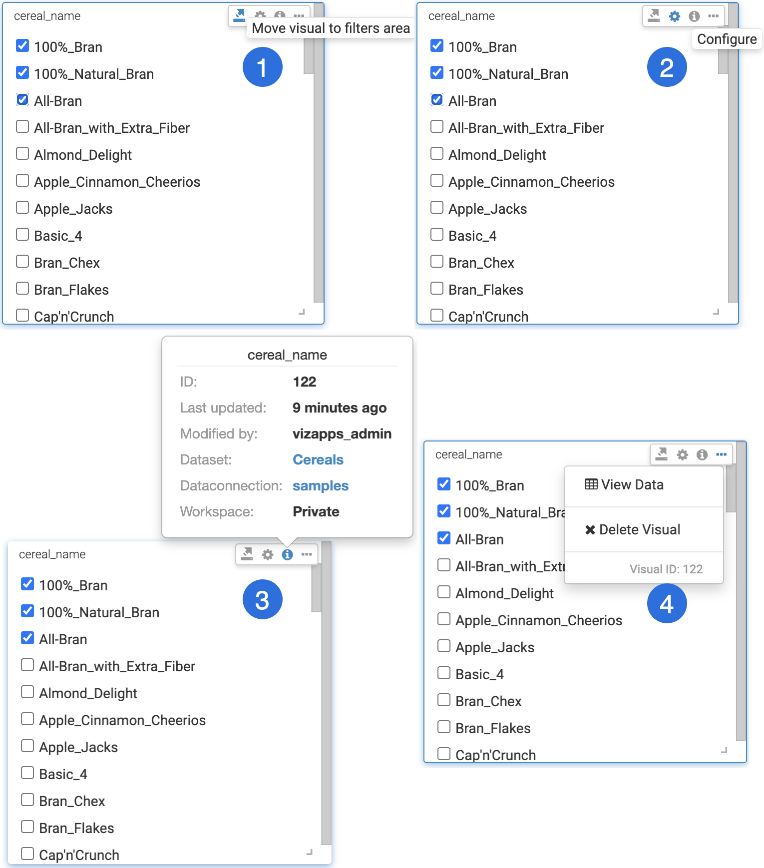 - Clicking the Information icon provides you with information about the visual and the dataset.