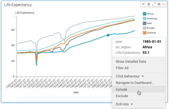3. In the context menu that appears, click Include. Here, we are selecting the line for Africa, in year 1985.