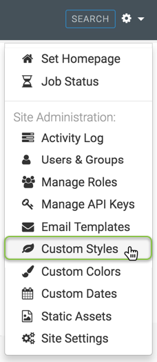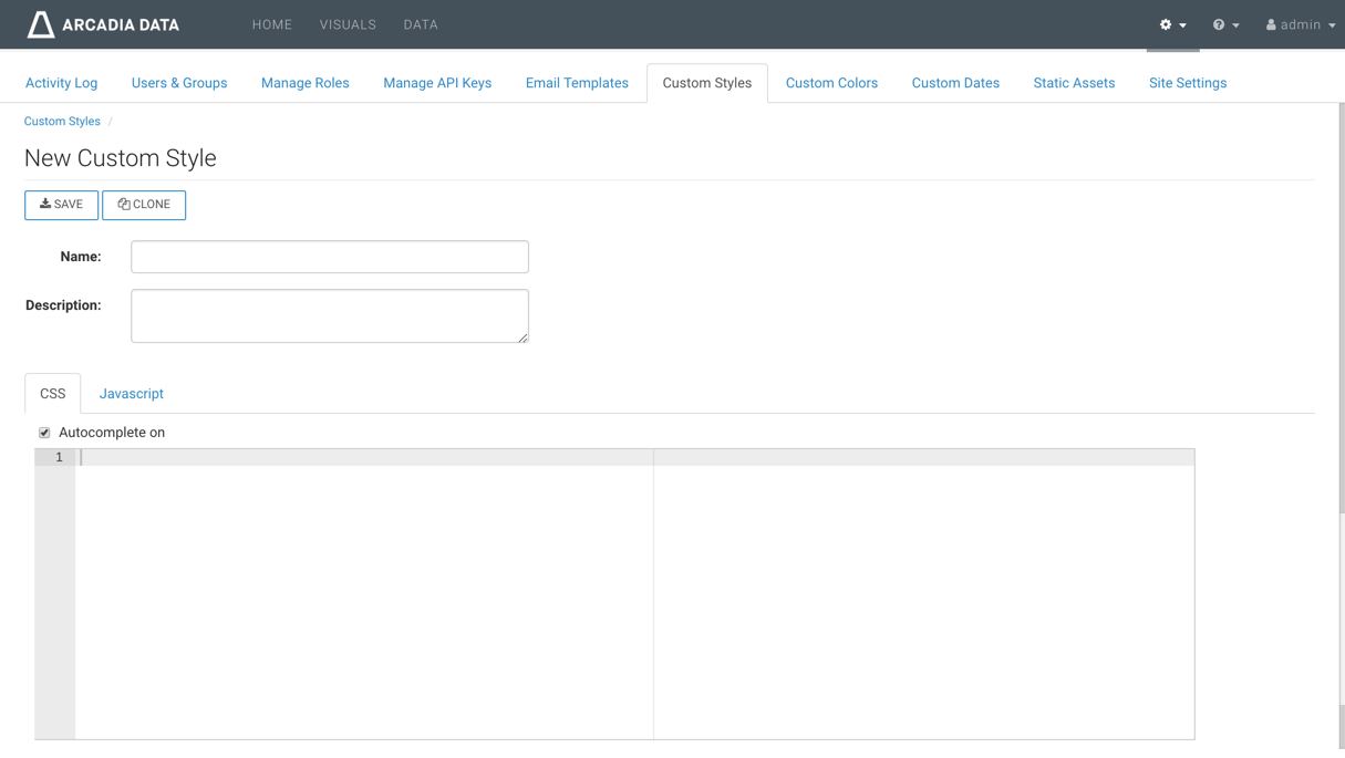 - Depending on your permissions, you can add CSS and Javascript (JS) styling: