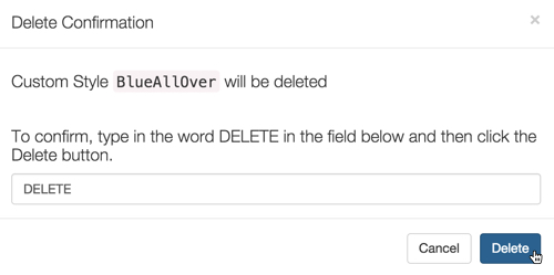 The recently deleted style is no longer listed in the Manage Custom Styles window.