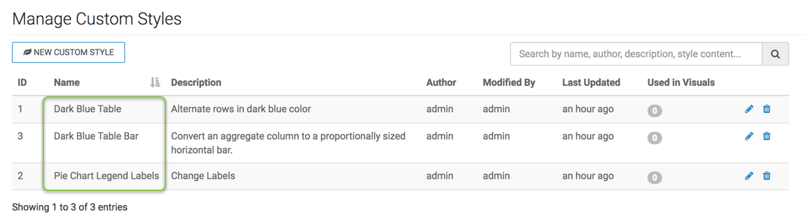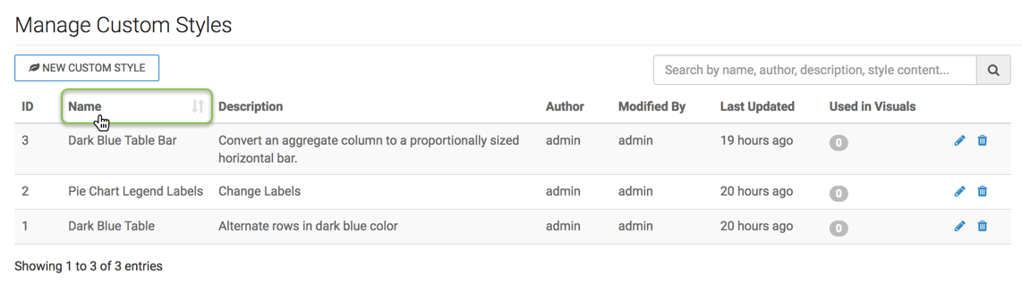 by ID, Name, Author, Modified By, Last Updated, and Used